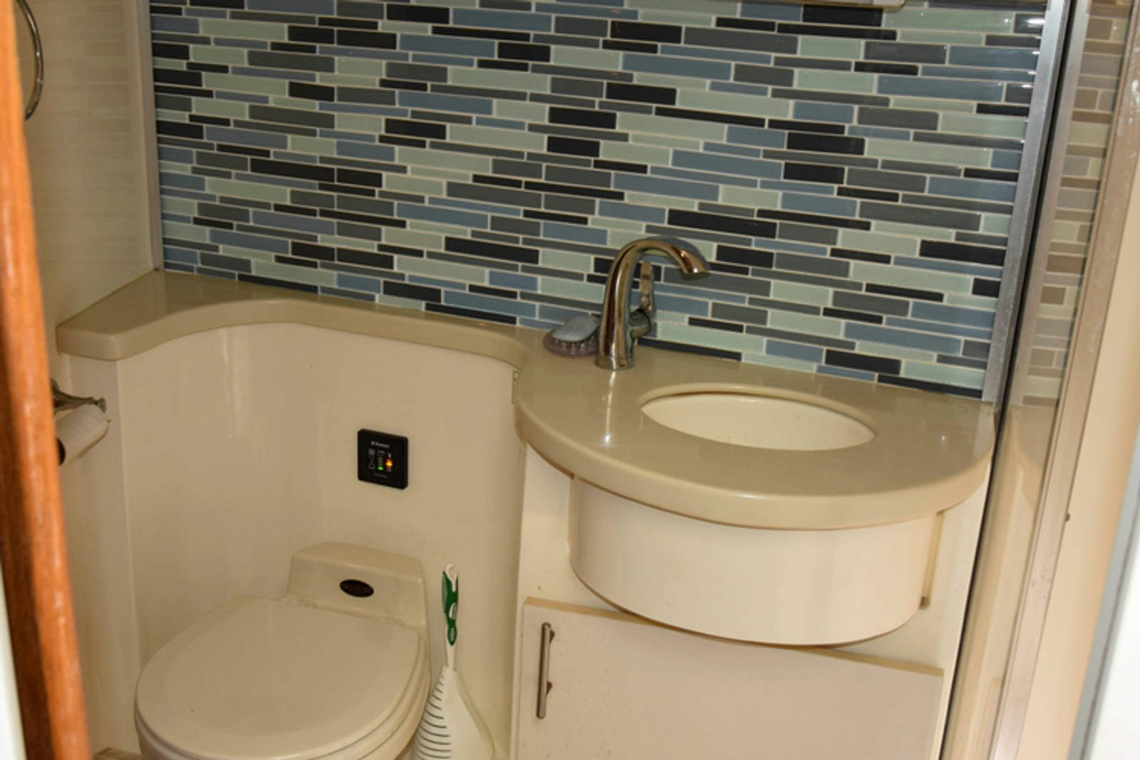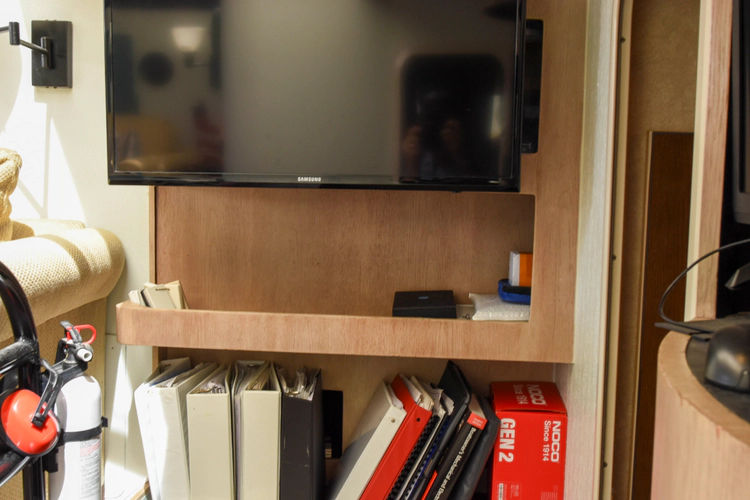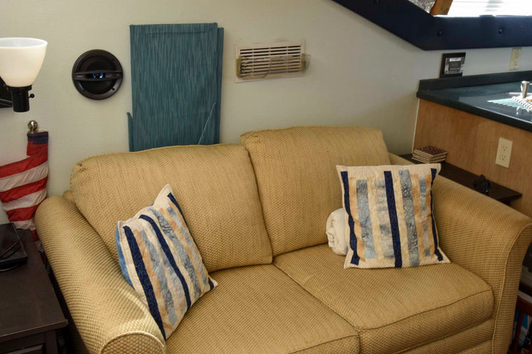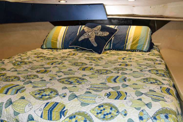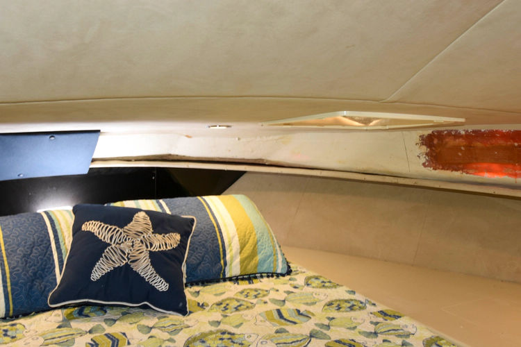 - Full head with sink, toilet, and separate shower (accessible from guest cabin and hallway)