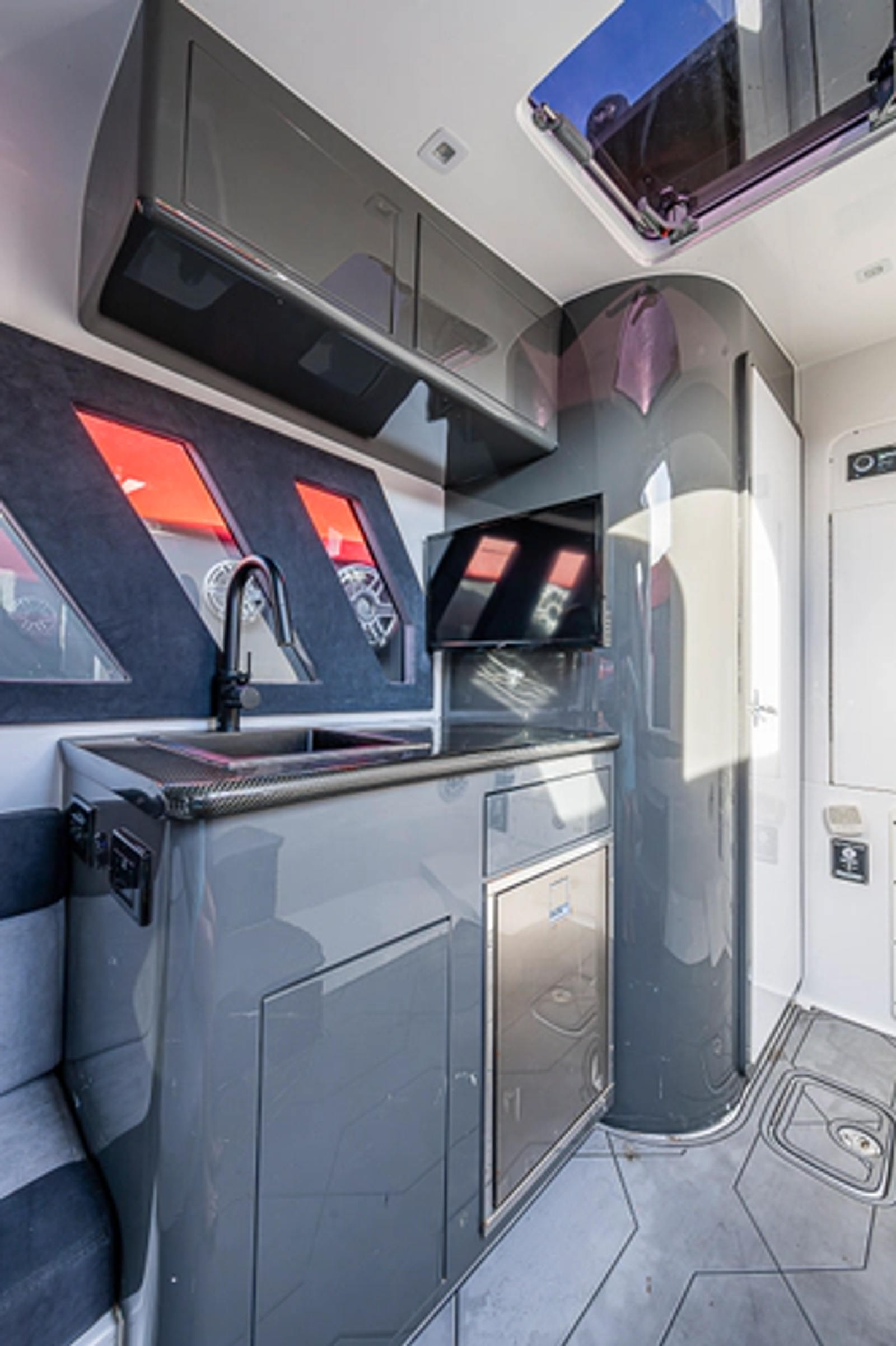 - Premium JL sound system with 18 speakers in cockpit, (6) 12andquot; sub woofers, MP3 Player Dock, 4 amplifiers, AV650 DVD Player, and 2 speakers in cabin, Bluetooth
