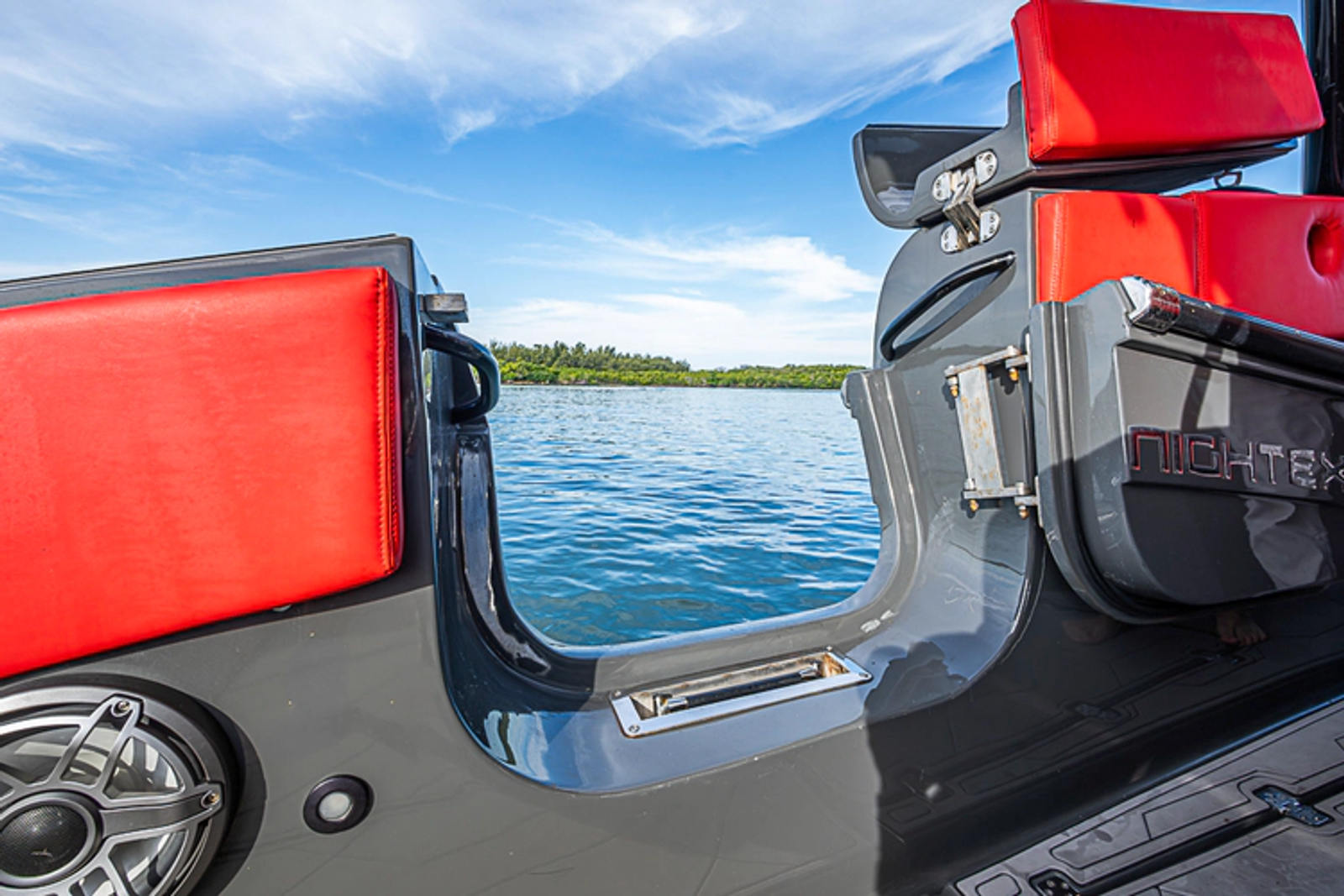 - Full width cooler in top of helm seat