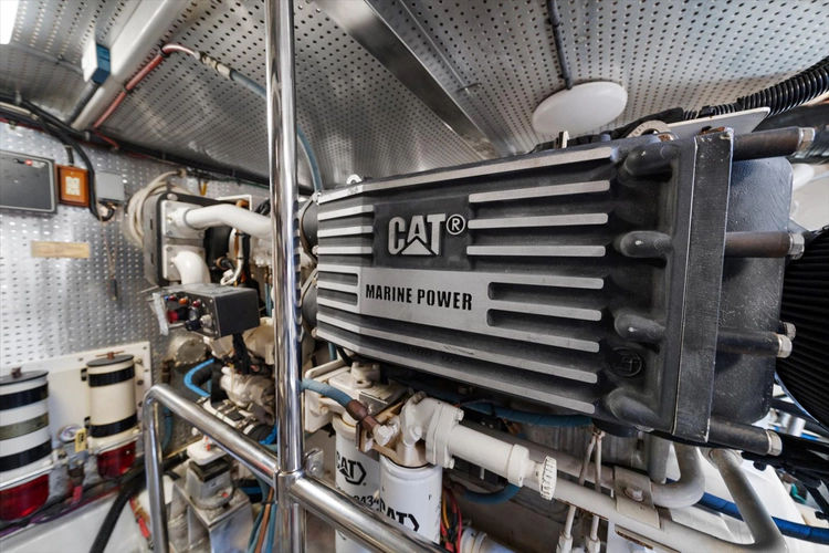 Powered by twin Caterpillar 3406E diesel engines, she delivers a dependable cruising experience with a comfortable 18-knot cruise and a top speed near 23 knots — ideal for Gulf Coast cruising, Keys passages, or extended cruising elsewhere. A 20 kW Northern Lights generator supports onboard comfort and convenience.