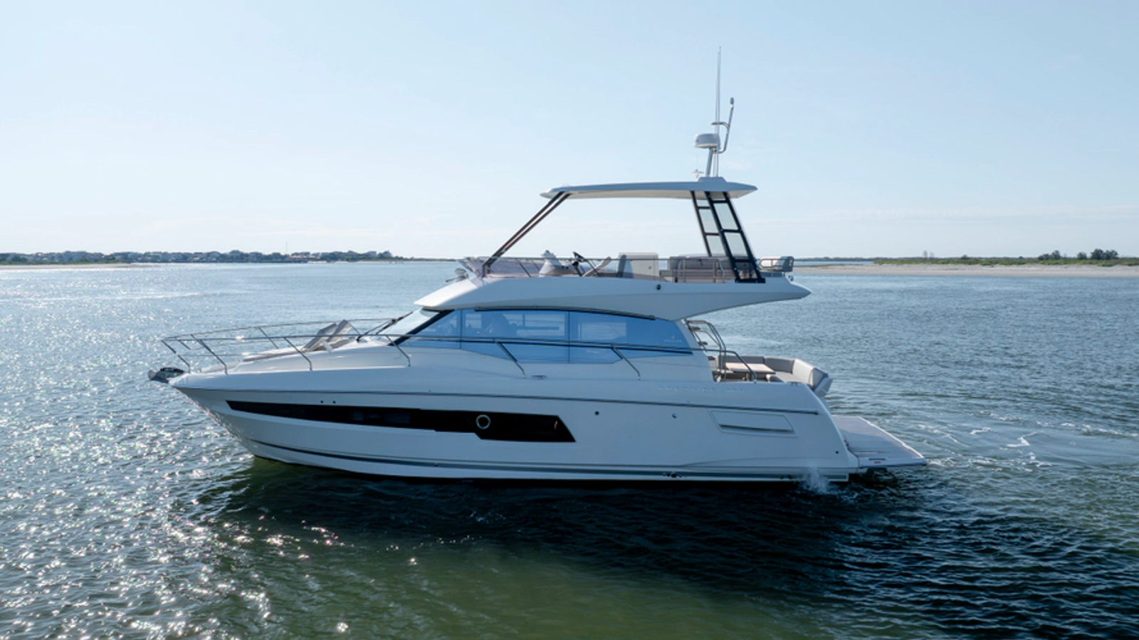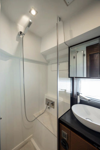 The contemporary layout of the exterior galley located to the aft opens onto an immense swim platform. The very comfortable Flybridge is an invitation to complete relaxation.