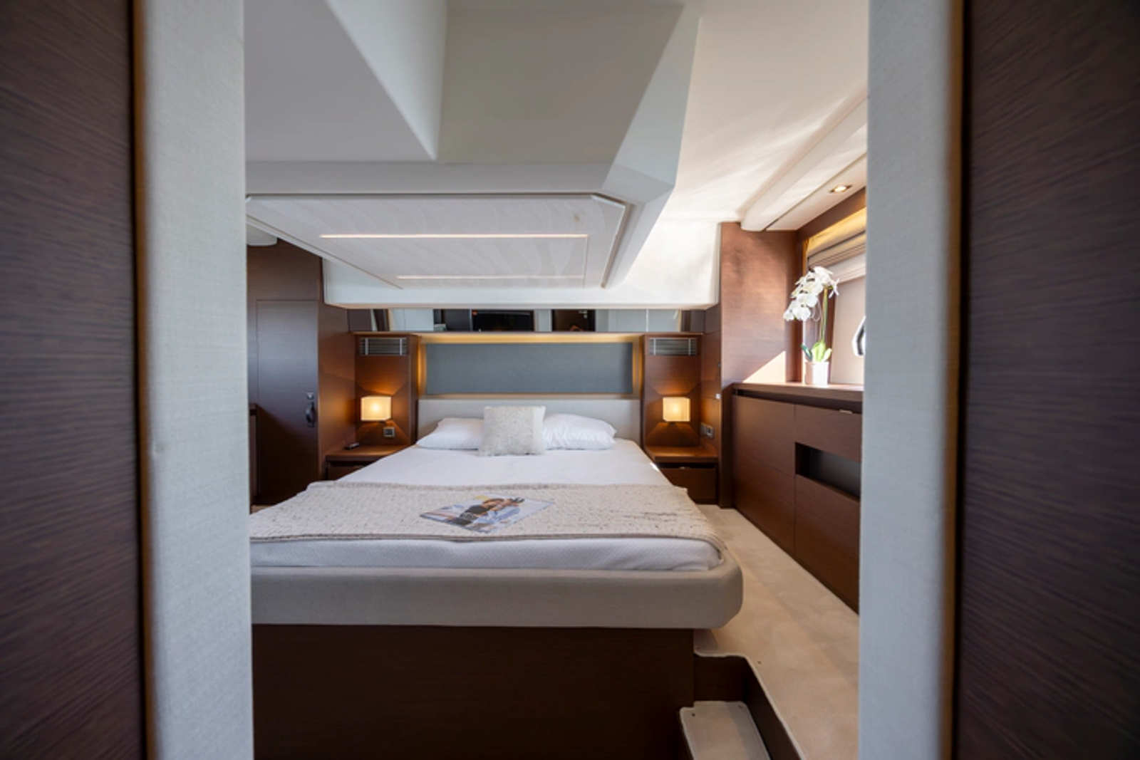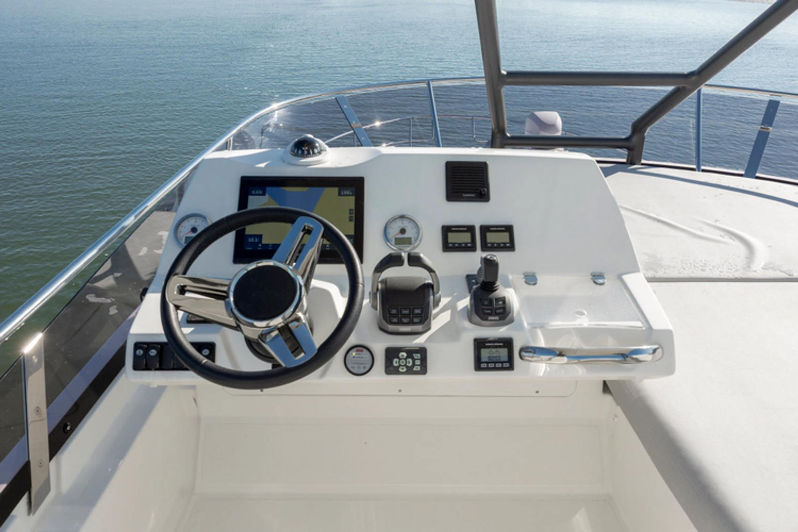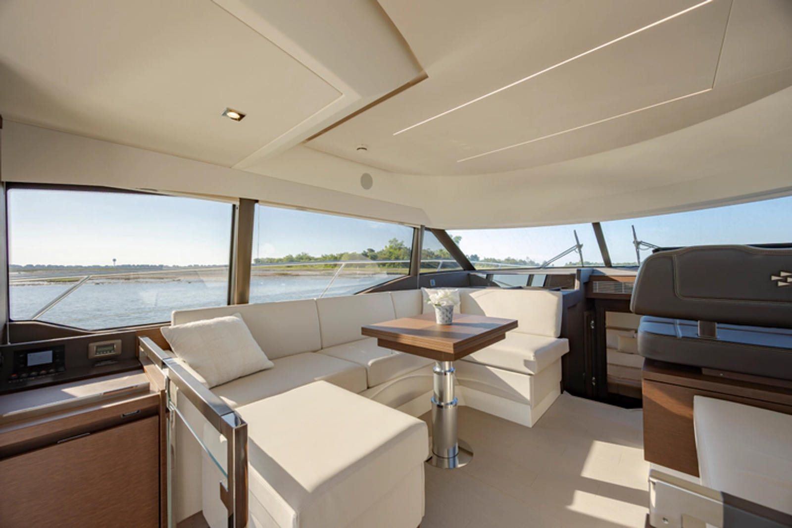 On board, everything has been optimized to offer unequalled space and comfort. Combining the design talents of Garroni Design and JP Concepts, this Flybridge meets all the latest requirements and boasts all the benefits of a true Prestige Yacht.