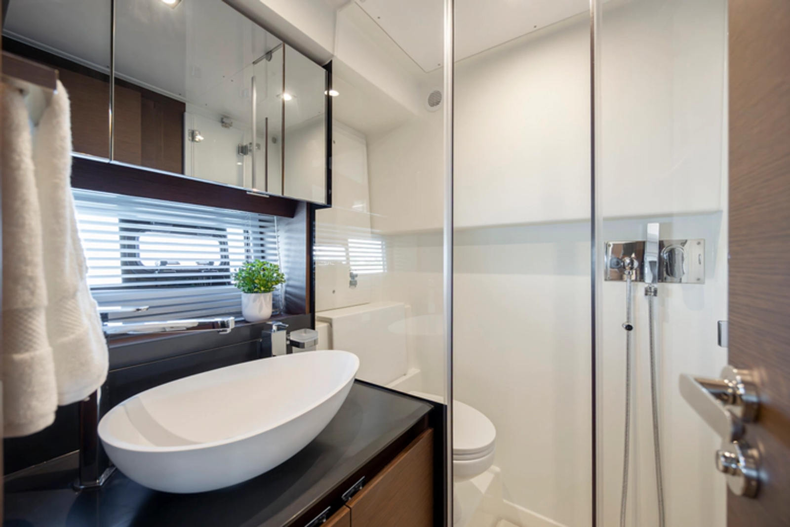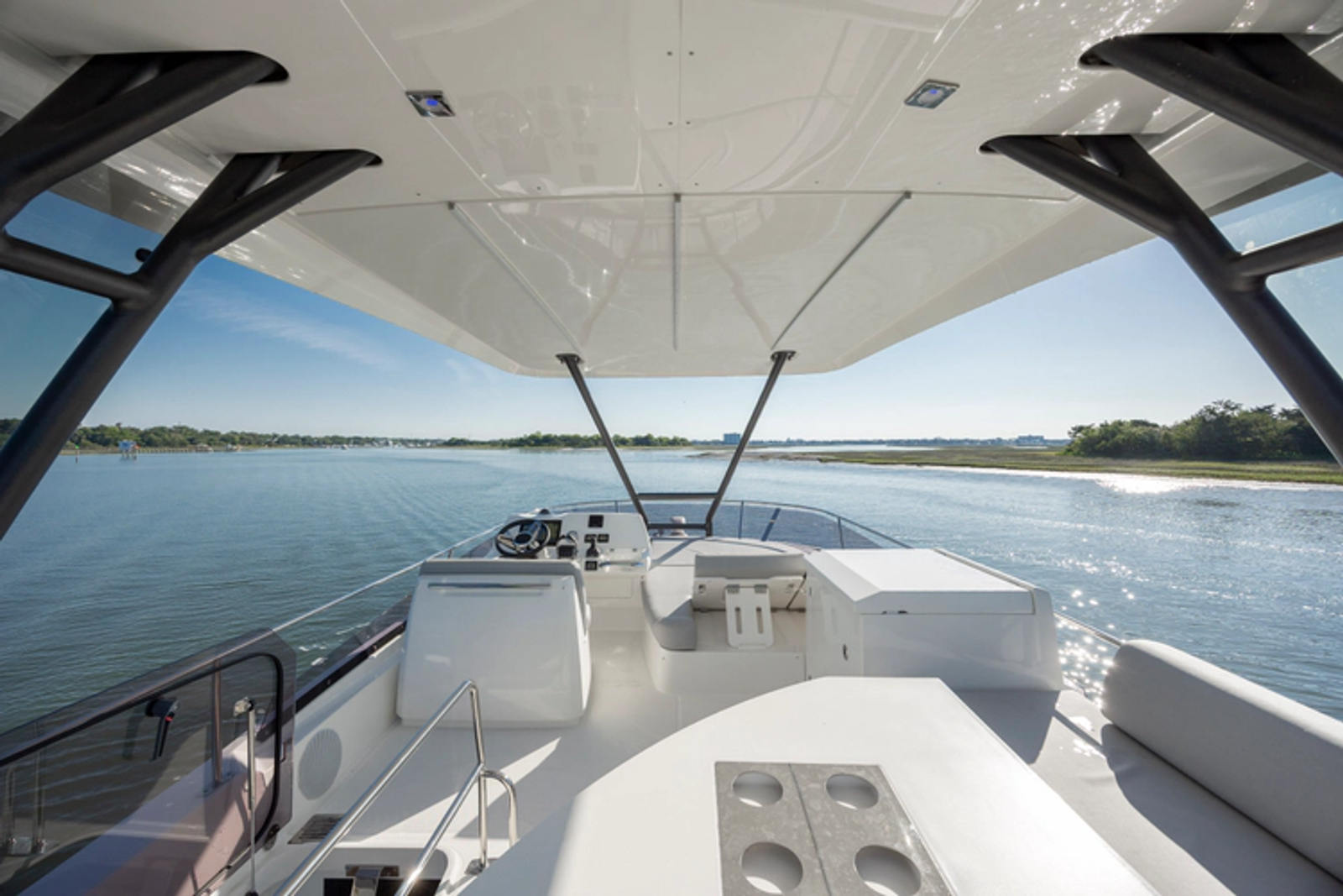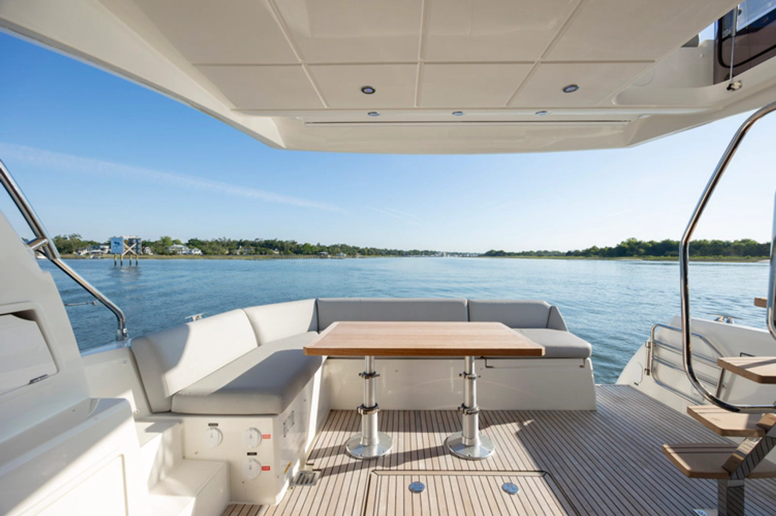 On board, everything has been optimized to offer unequalled space and comfort. Combining the design talents of Garroni Design and JP Concepts, this Flybridge meets all the latest requirements and boasts all the benefits of a true Prestige Yacht.