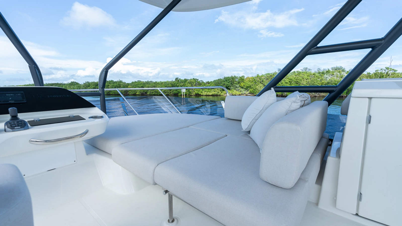 - Retractable foredeck canopy
