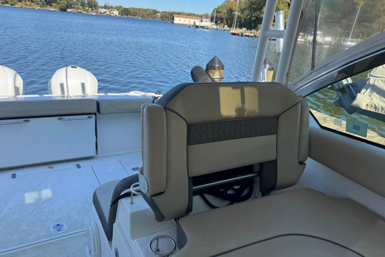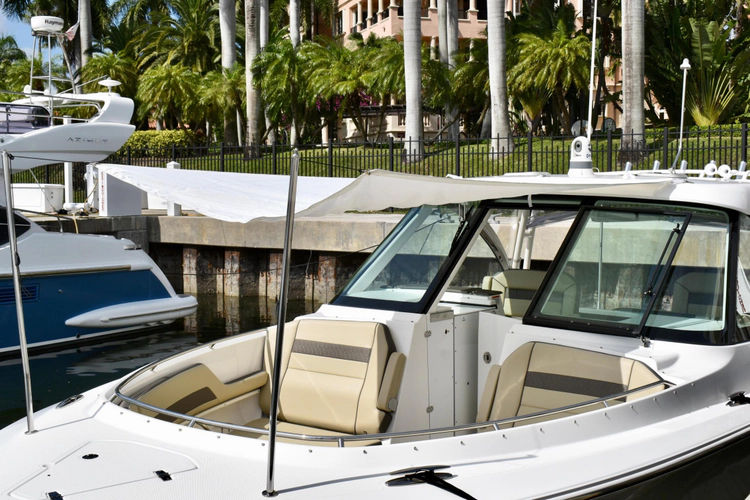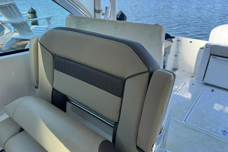 The Pursuit 325 Dual Console is the perfect boat for enjoying a luxurious cruise with family and friends, or going off the beaten path for a day of fishing. With ample seating, this boat can easily accommodate 10+ people. With her cabin, helm & head AC, as well as a full enclosure, you can rest assure you & your guests will be protected from the elements on a hot summer day as well as those wet rainy days. she comes equipped with a sun Shade for comfort and protection from the elements as well as a cockpit cover, forward seating covers & electronics covers to fully protect the upholstery. This Pursuit is equipped with every option available, with the exception of a radar. This boat is a must see!