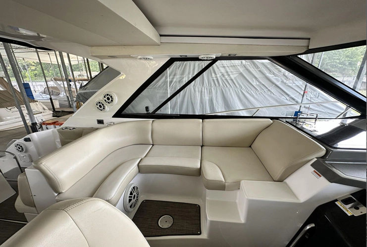 Freshwater ran Volvo Gas IPS makes for ease of movability at the docks. With smooth, integrated joystick control, this Sport Coupe is a breeze to dock in any condition. The gas Volvo engines have just around 680 hours that have been professionally maintained ensuring the vesseland#39;s pristine condition. The Kohler Genset, with its low hours at 389, power the onboard A/Cs and all onboard 120V systems.
