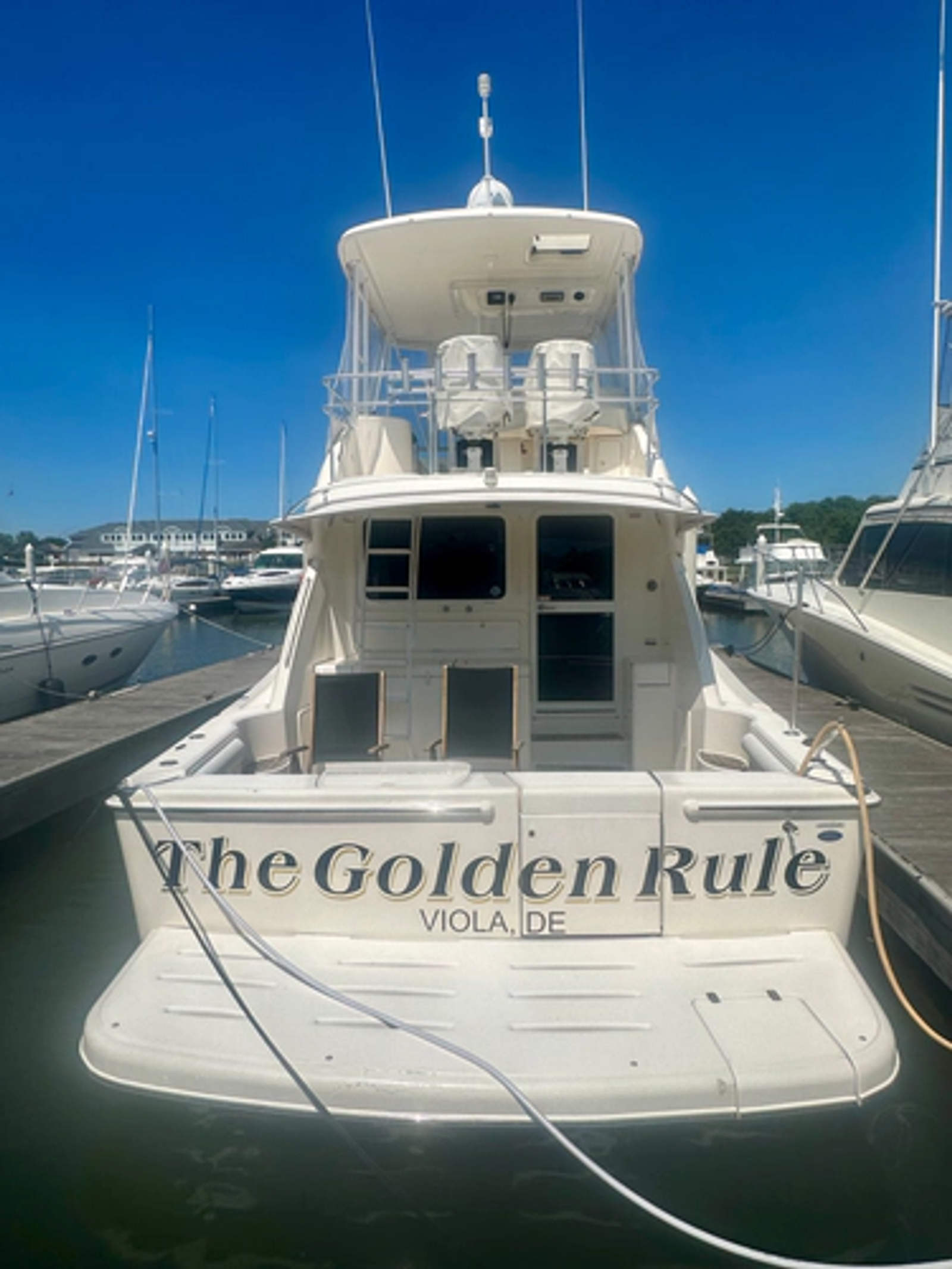 This low-hour Riviera 42 has never been south of the brackish (70% fresh) water of the upper Chesapeake Bay. She has the most desirable engine package, the 540 horsepower Cummins QSC Common Rails, which provide ample power and the most space in the engine room. Ready for her next adventures, we do not expect her to last long in today's market, so please call now.