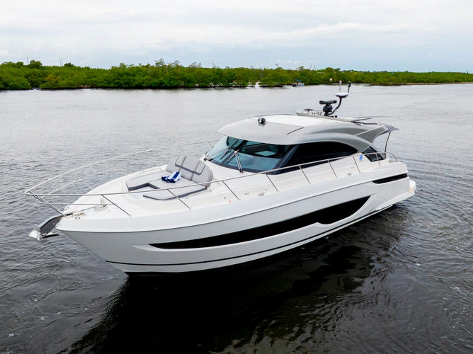 The new 46 Sports Motor Yacht offers a wide, open cockpit designed for water sports action. Three entertaining and dining options. An aft gourmet galley and spacious saloon.