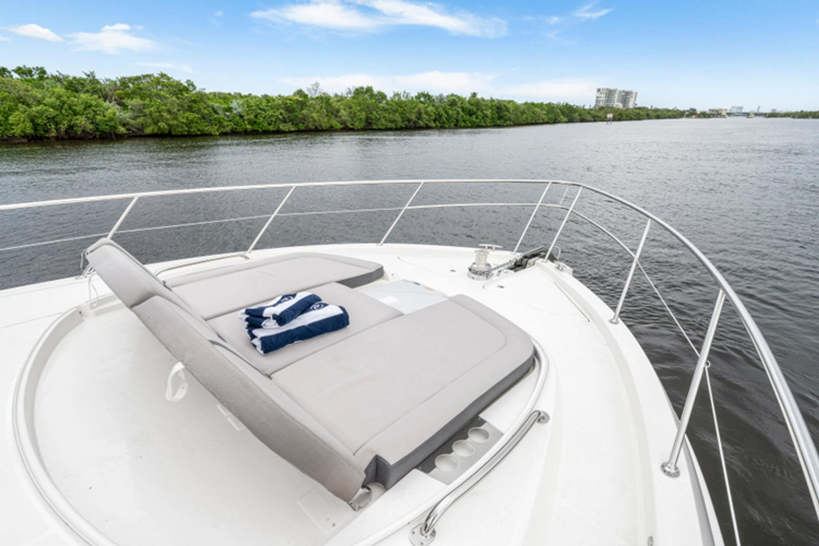 Stretch out and relax on the foredeck sun pad; or the daybed on the alfresco deck; or perhaps the flybridge daybed will be your favourite.