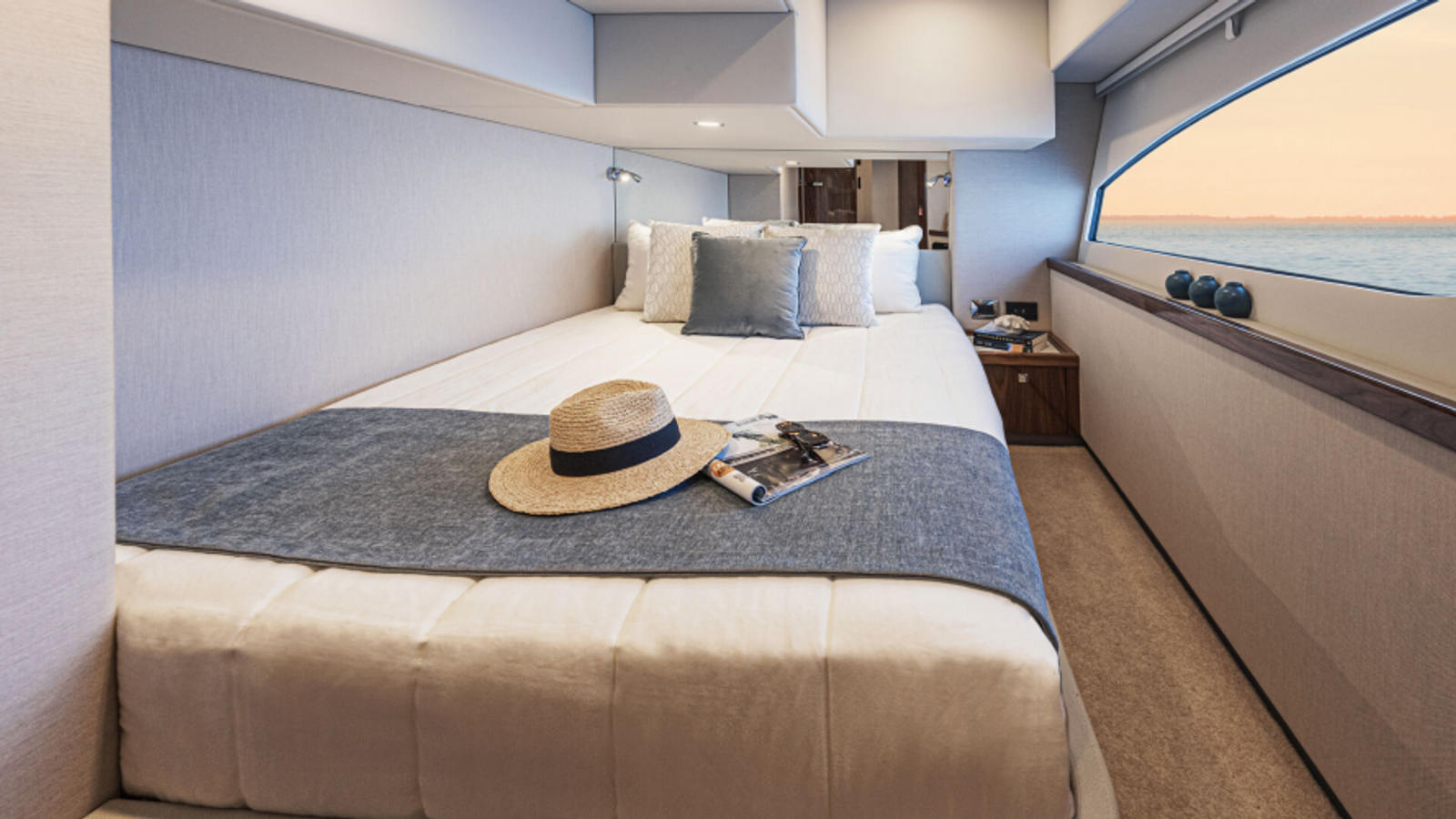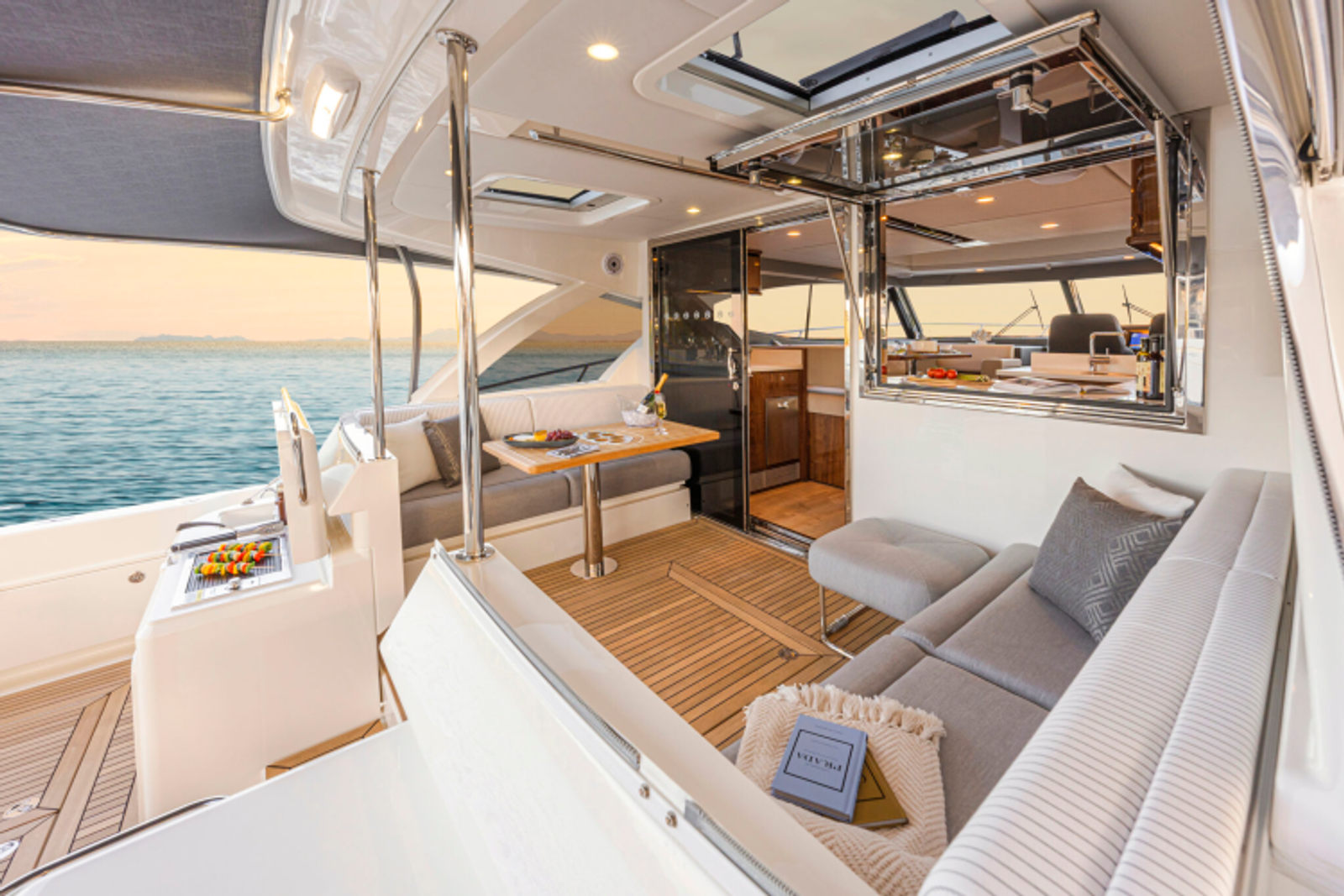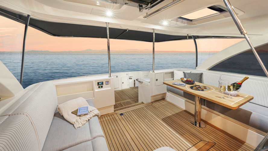 From bow to boarding platform, the 465 SUV showcases Riviera’s hallmark attention to detail, handcrafted finishes, and smart technology that makes boating effortless. The flowing salon opens seamlessly to an alfresco deck, while the expansive cockpit is always ready for water-sports action. Below deck, accommodations include three luxurious staterooms and two bathrooms, offering the liveability of a much larger yacht.