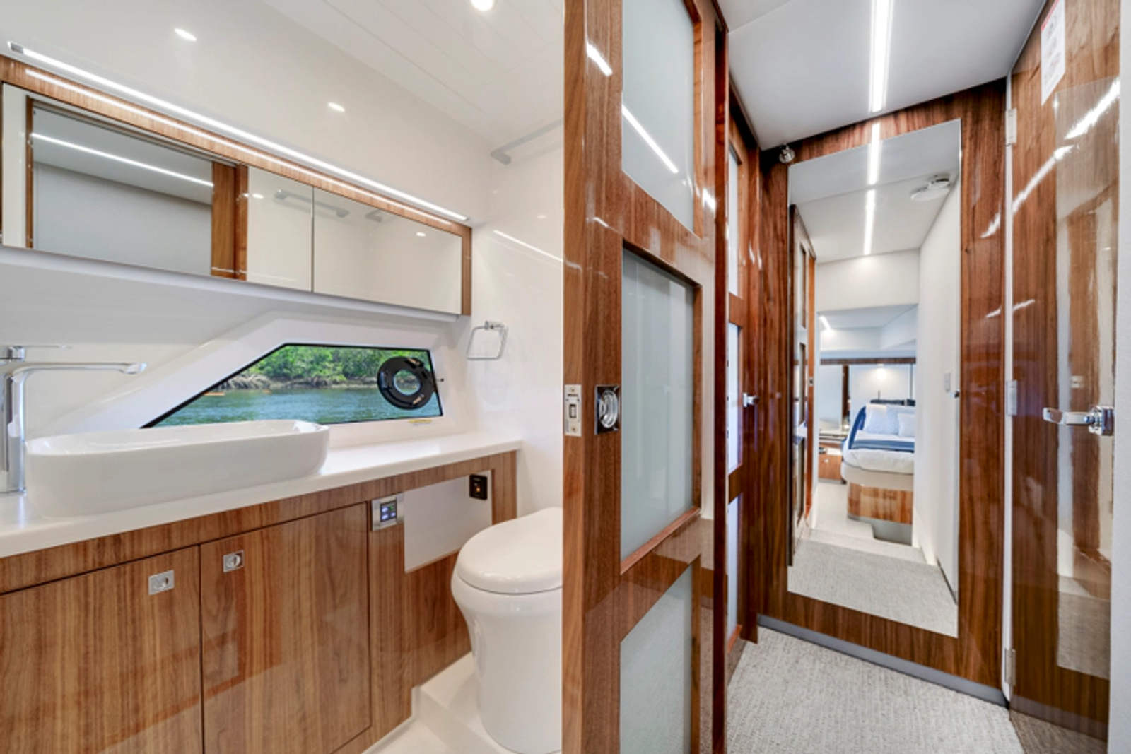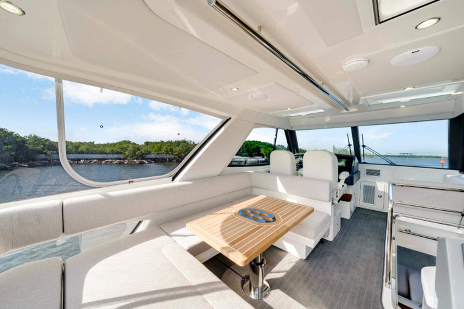 - Porthole (x2) opening round clear glass with alarm to helm, stainless steel and and#238;yscreen