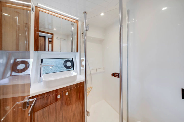 Engineering excellence matches her very sporty looks with real sports performance. The 50 SMY is available with a choice of two highly efficient power and drive options both with joystick controls – twin diesel Volvo Penta IPS950 or twin diesel shaft-drive MAN i6-800 engines. Both power packages deliver a smooth, quiet and efficient ride.