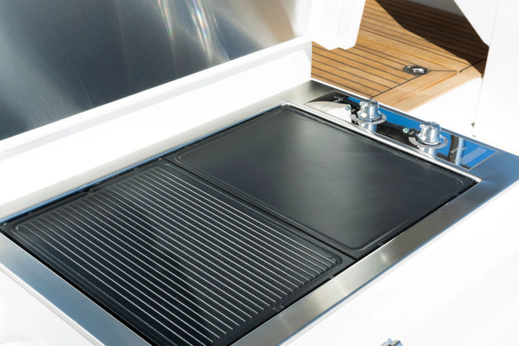 - Hydraulic operation for GRP platform (up/down 350kg max) with and#237;xed hob section, including reinforcement of transom (boat trim andamp; performance will be aand#236;ected)