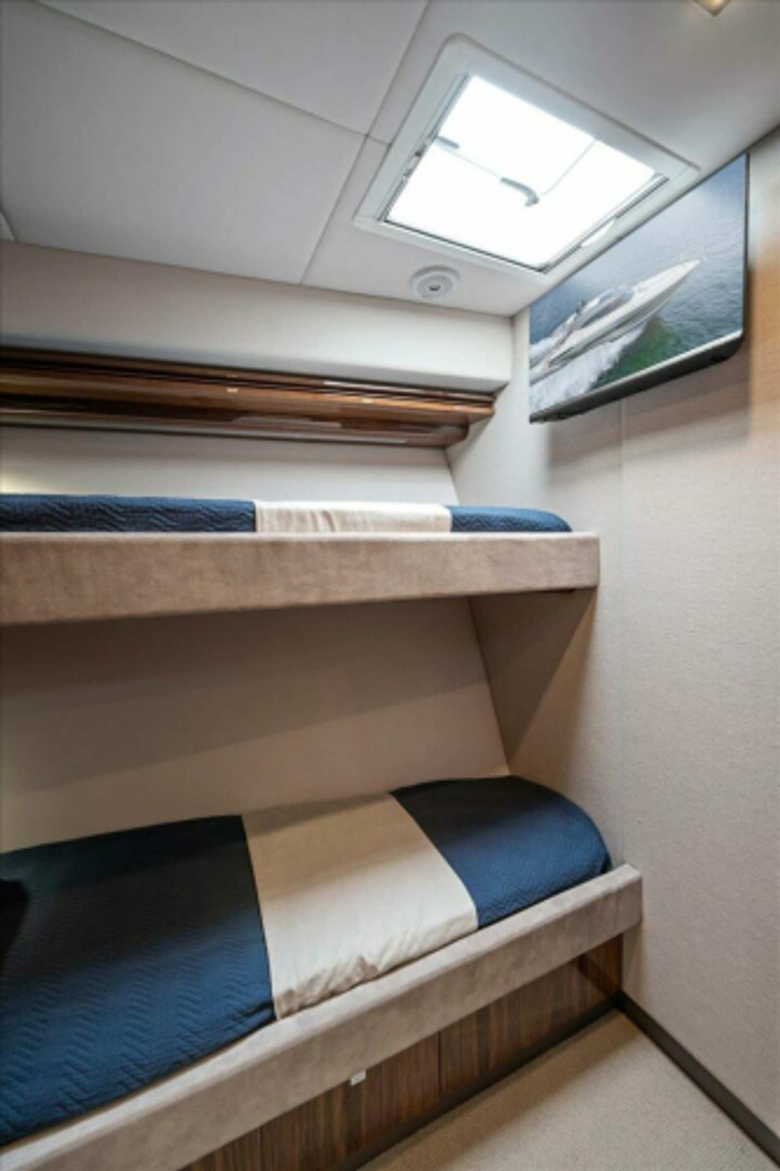Berths, upper and lower (innerspring mattresses) with storage under