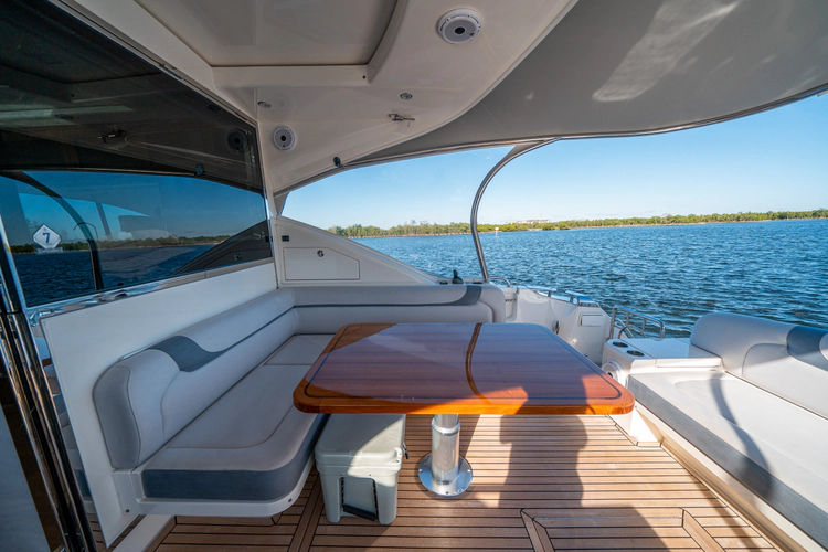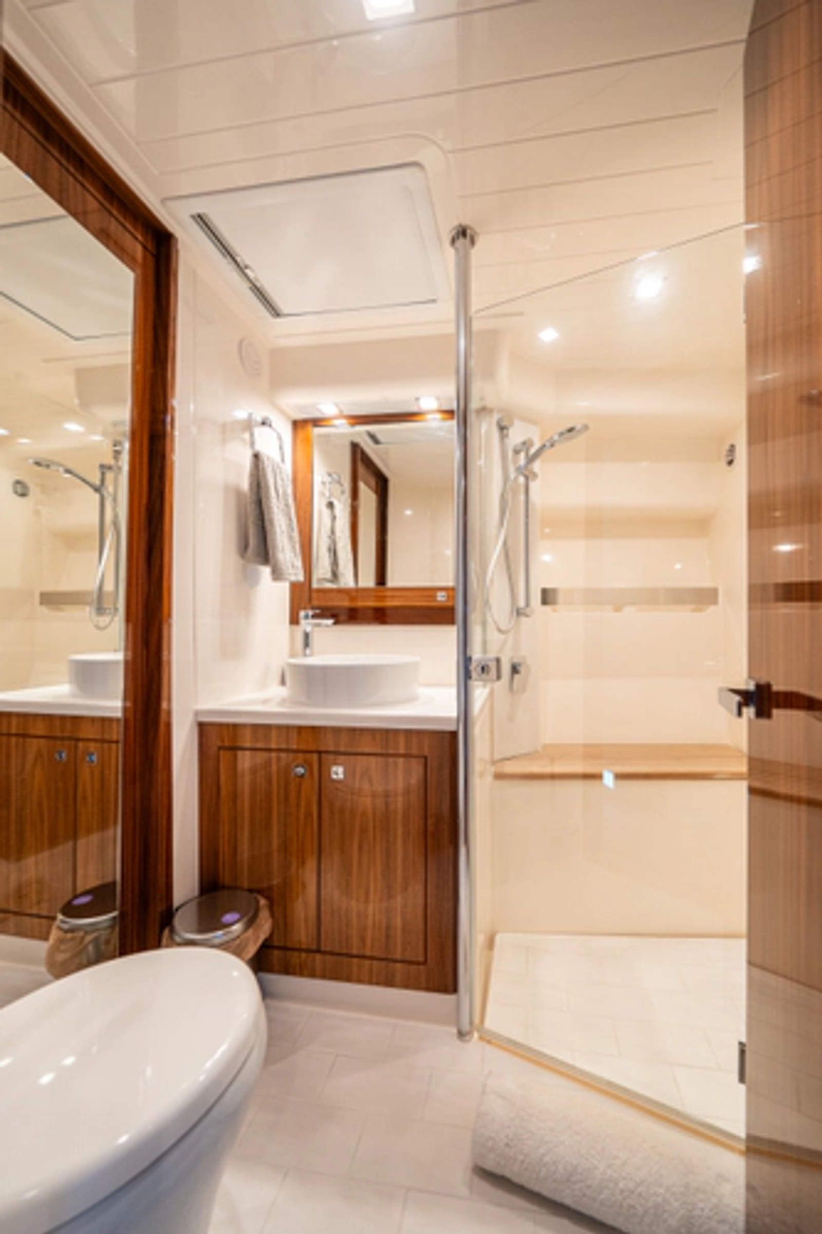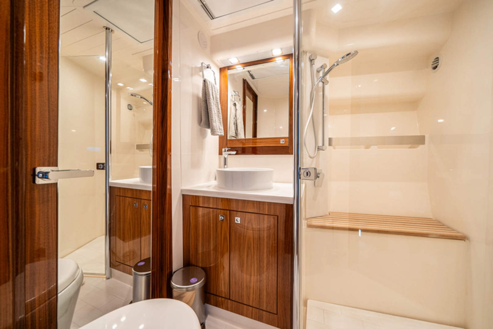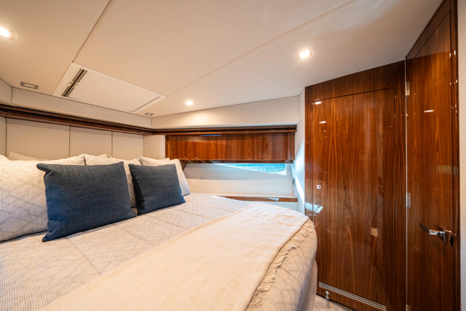 Below deck, WATERDOG offers a three-stateroom, two-head layout, highlighted by a full-beam master suite with a private ensuite. Every detail reflects Riviera’s commitment to craftsmanship and comfort, from the high-gloss timber finishes to the thoughtful integration of light, texture, and space.