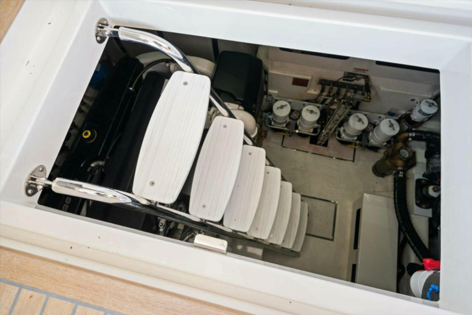 Access to Engine room through 3 x hatches with stainless steel lockdowns
