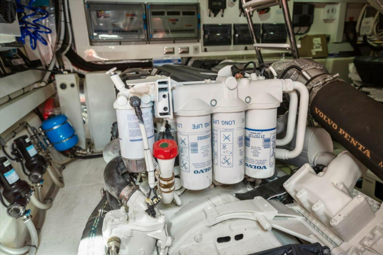 Alternators - Port alternator charges start bank, secondary port alternator charges auxiliary bank. Starboard alternator charges starboard start bank andamp; secondary starboard alternator charges house bank.
