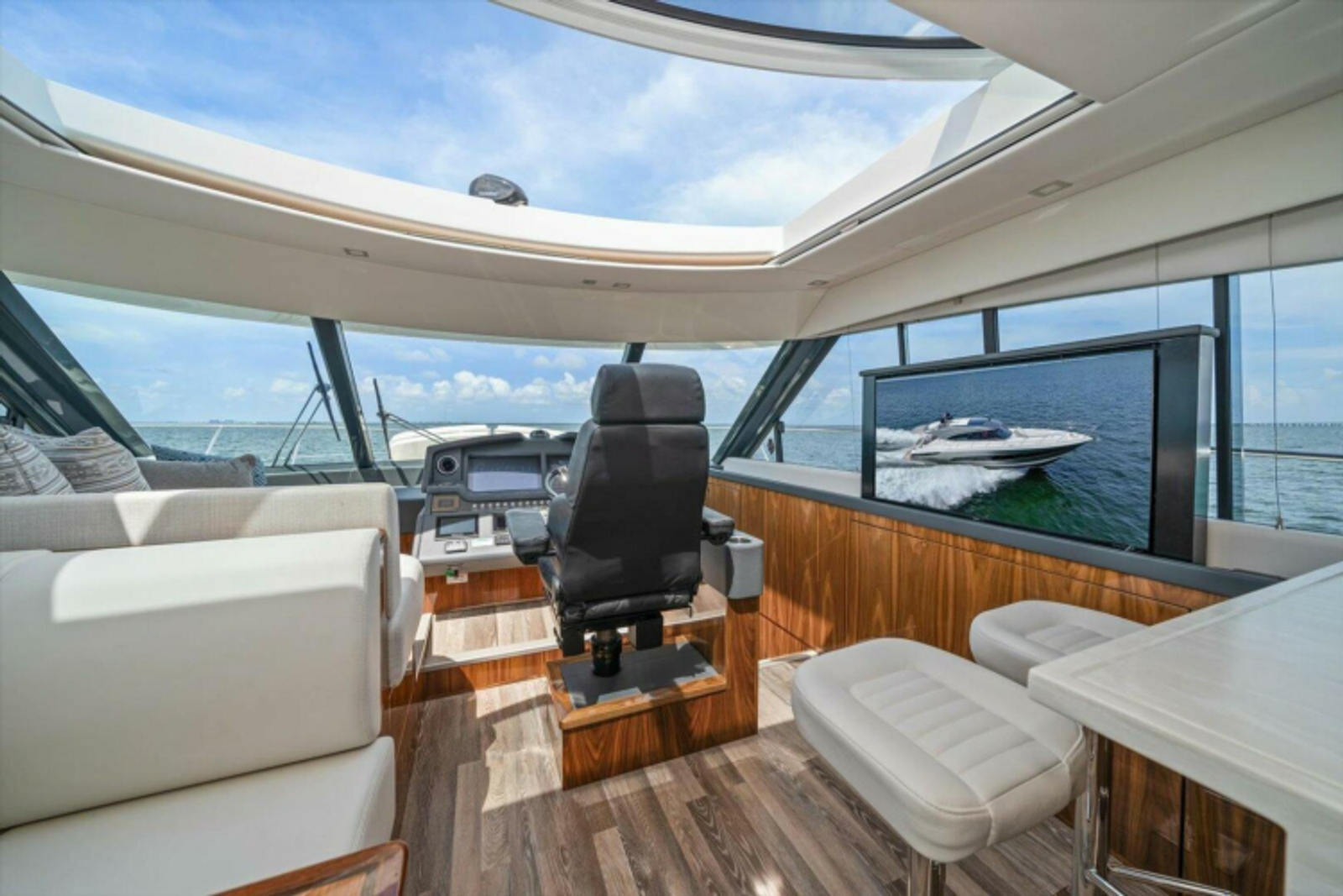 Sunroof, Tinted glass electric open/close sliding over helm/dinette area. Includes manual sliding screen andamp; blind