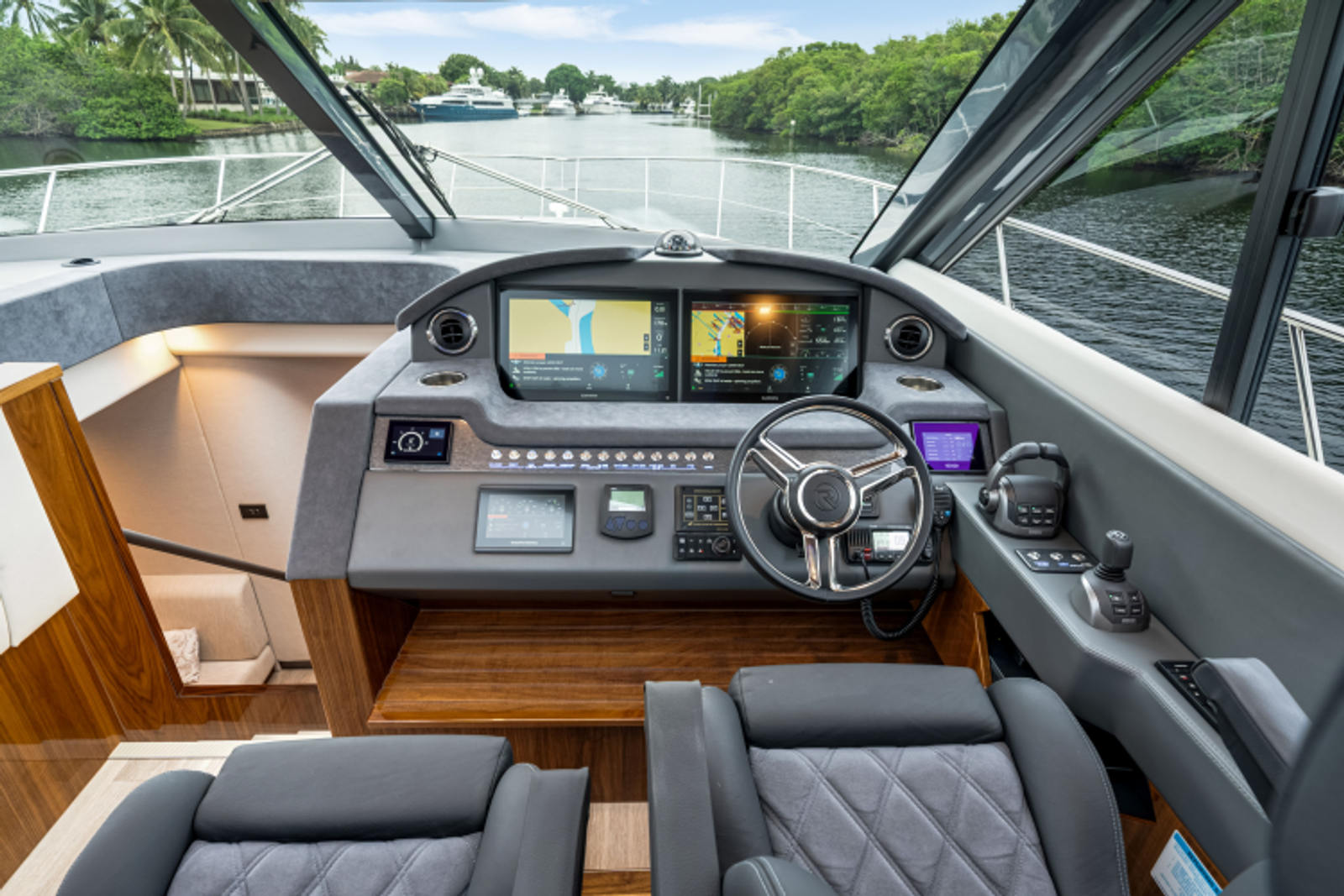 Introducing the Platinum Edition Riviera 6000 Sport Yacht! Featuring a long list of cosmetic and equipment upgrades, this is a fresh new take on a proven world-beater. We have this new, custom-built 6000 Sport Yacht. We spec'd her with the preferred lower lounge/three cabin/three head layout, high gloss walnut interior joinerwork, and a very long list of factory and custom options we would love to discuss with you.