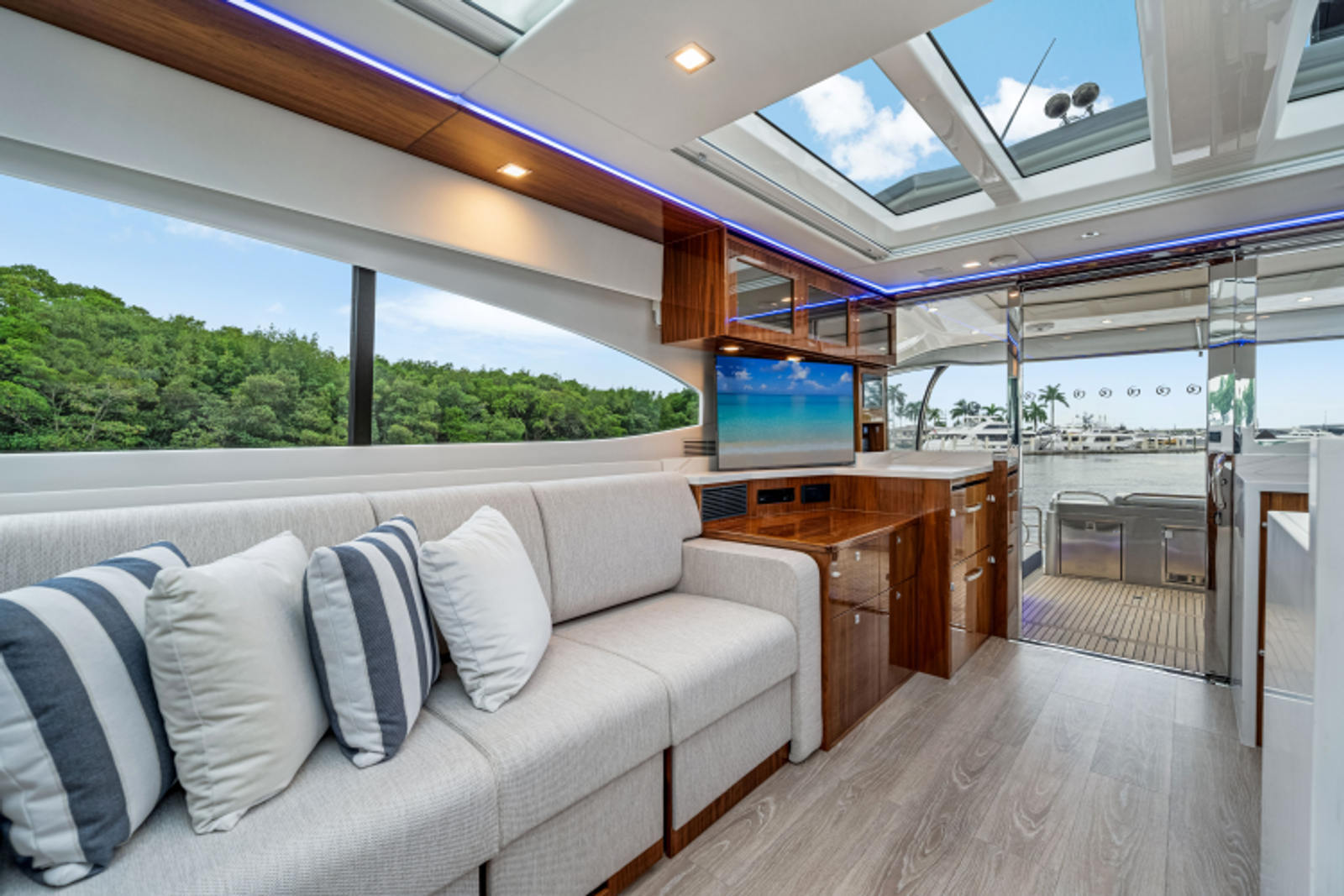 - Upholstery upgrade to cockpit lounge and foredeck sun pad - Sunbrella