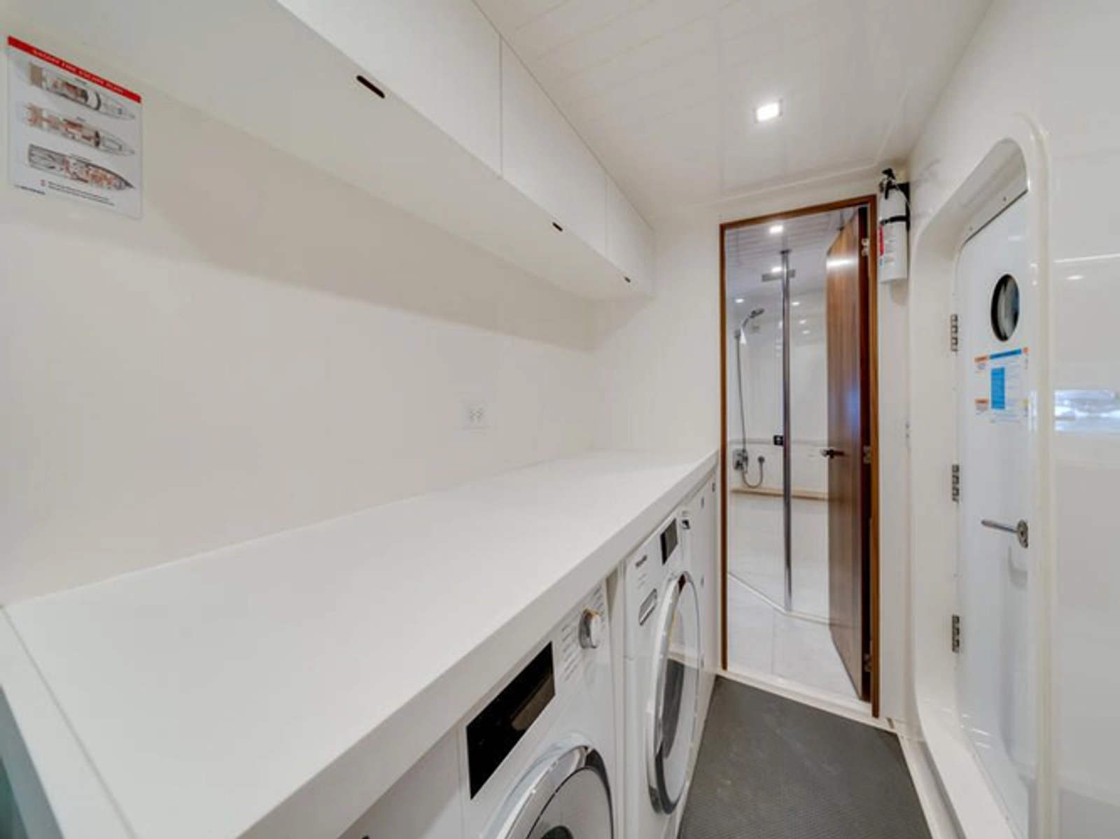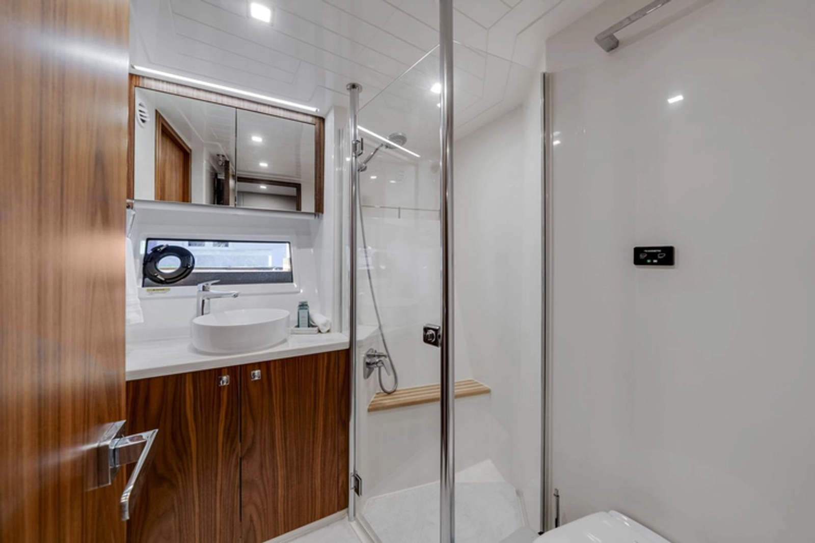 - Bow davit, premium galley appliances, wine cooler, dishwasher