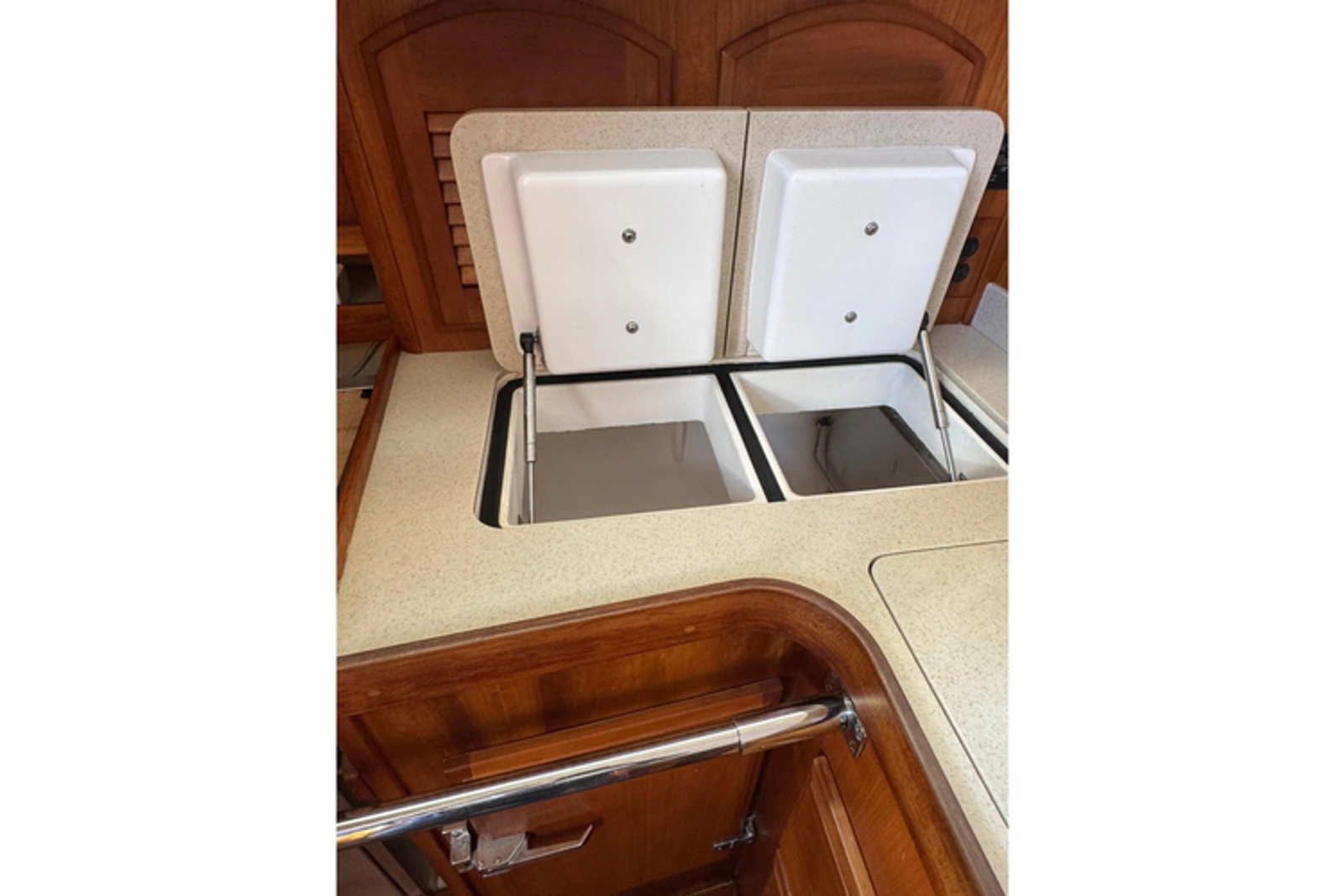 •Teak bang rails with stainless steel cap