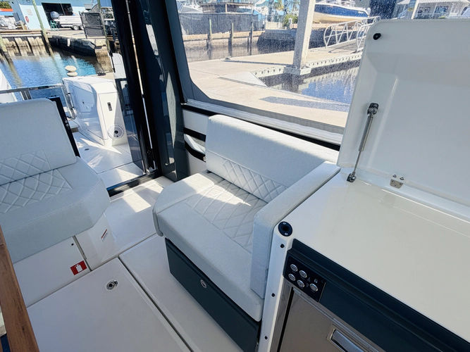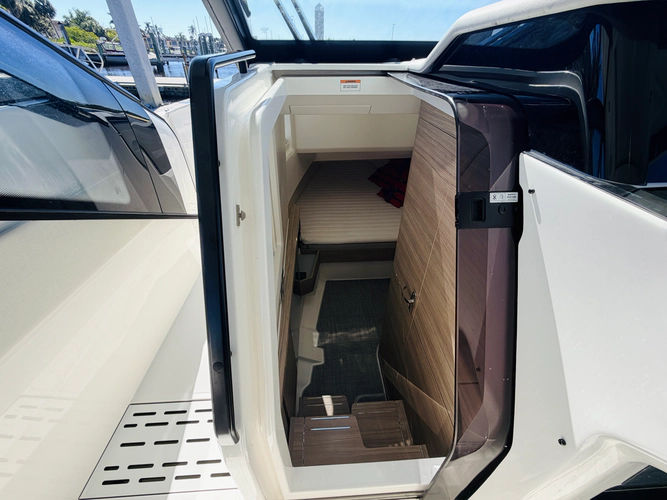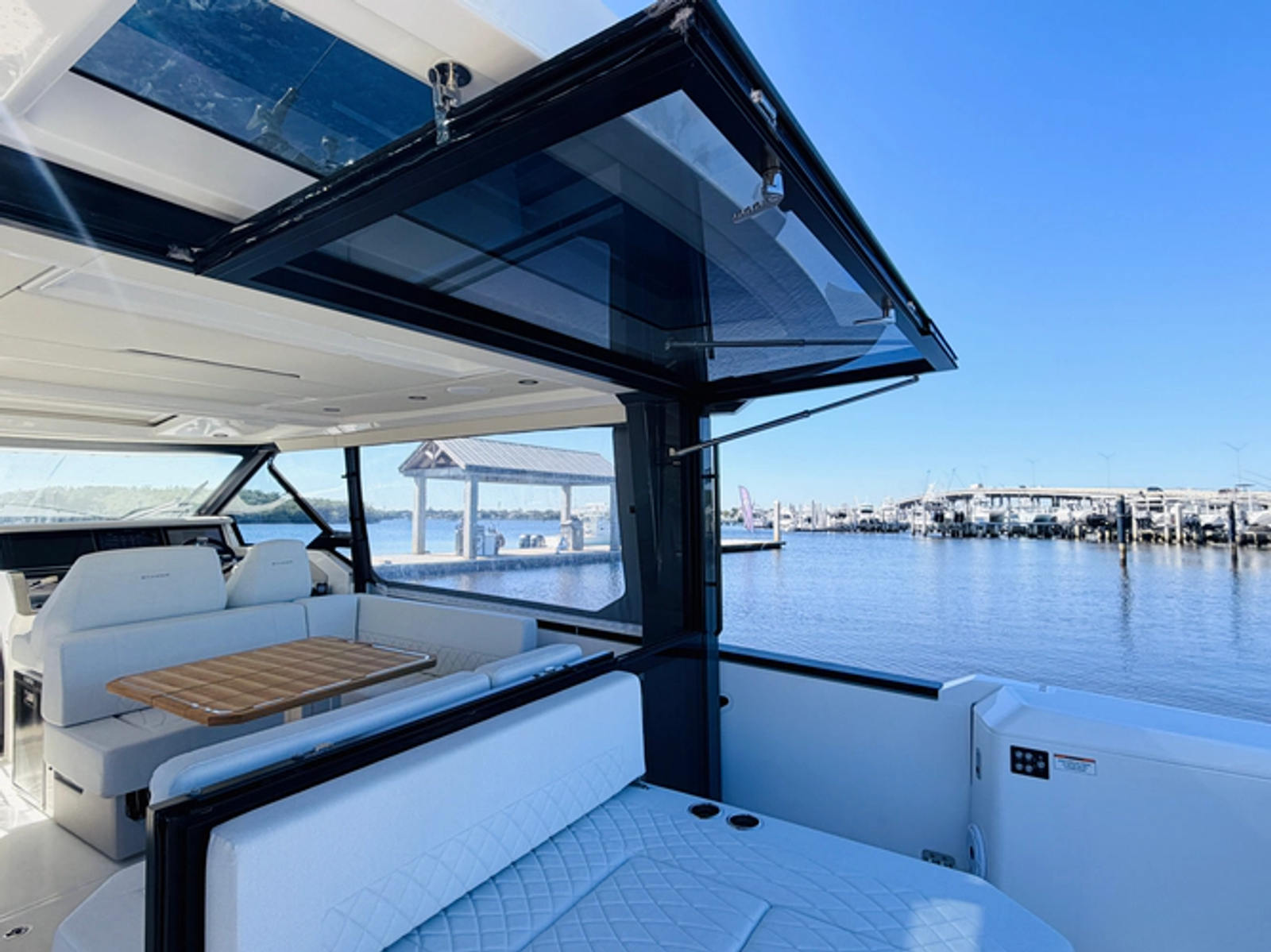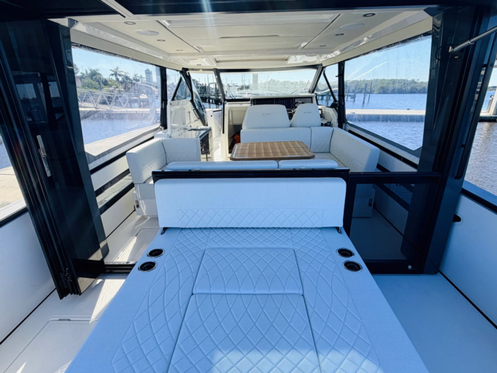 The 400 GTO perfectly balances high-performance thrills with sophisticated overnight capabilities. This particular boat is tariff-free, adding exceptional value to a package designed for everything from spirited sunrise runs to relaxed sunset stays.