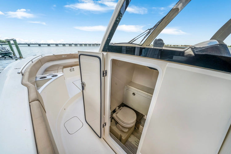 - Enclosed head in console with holding tank