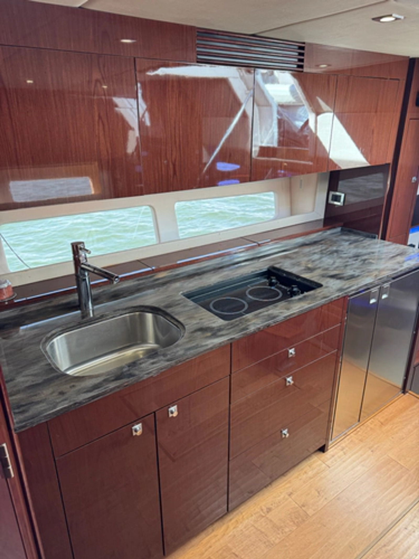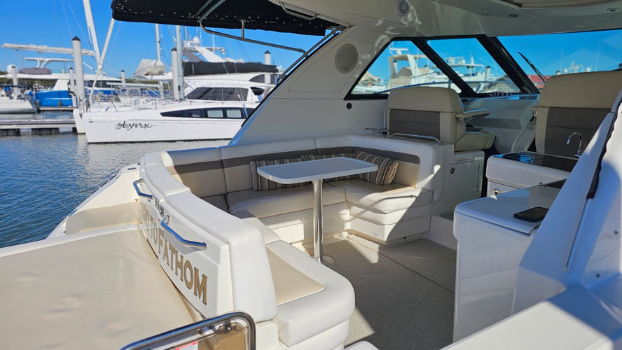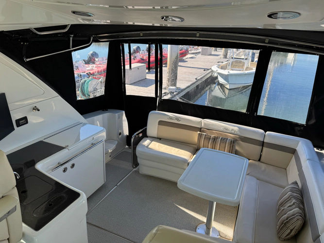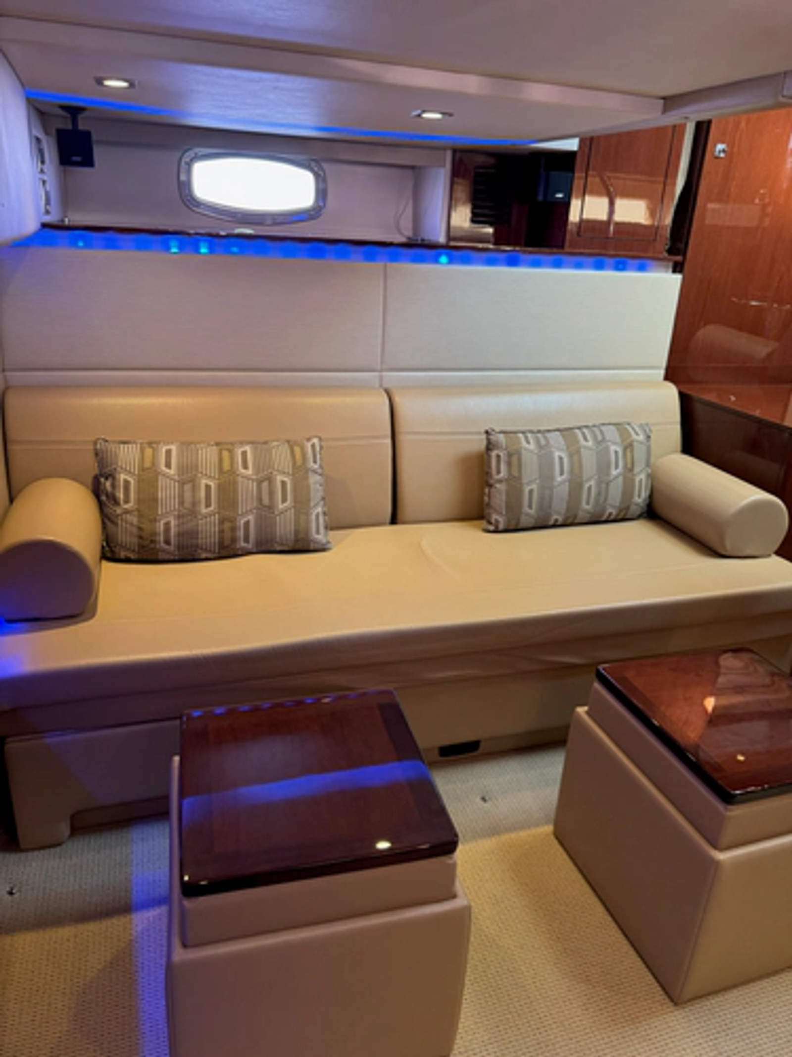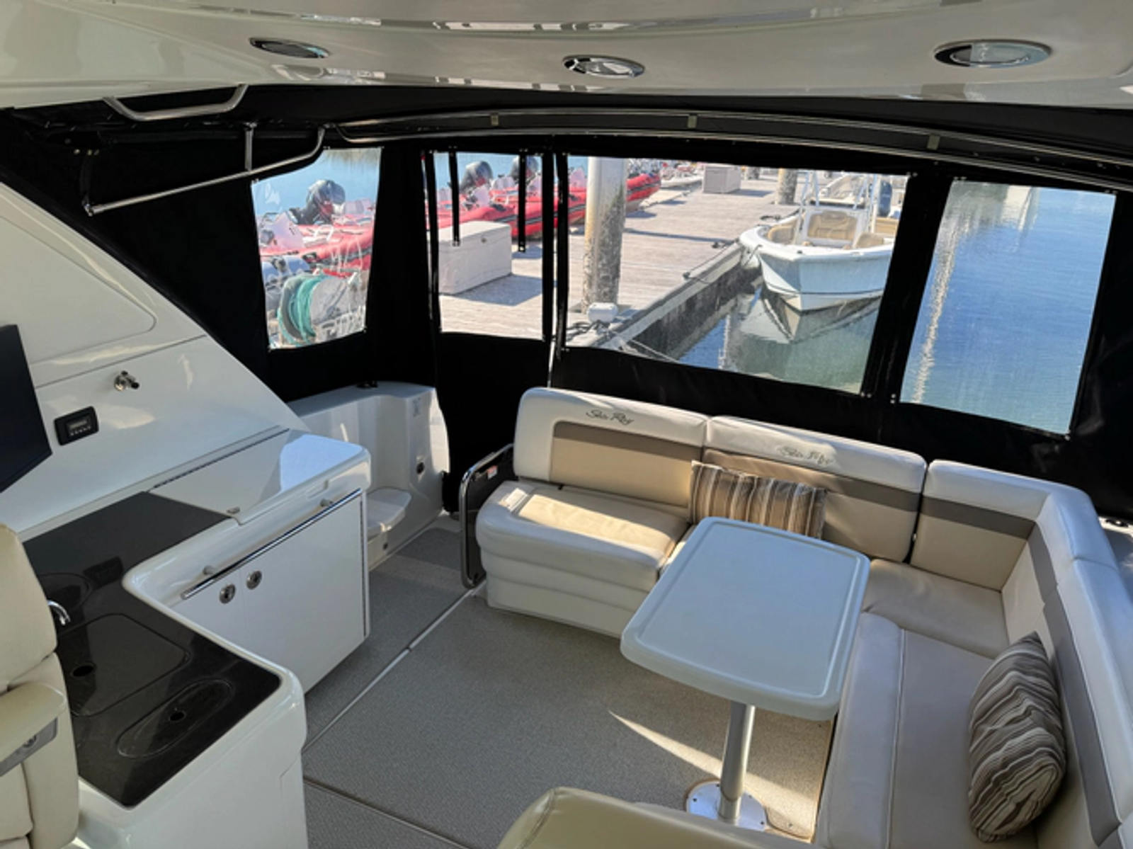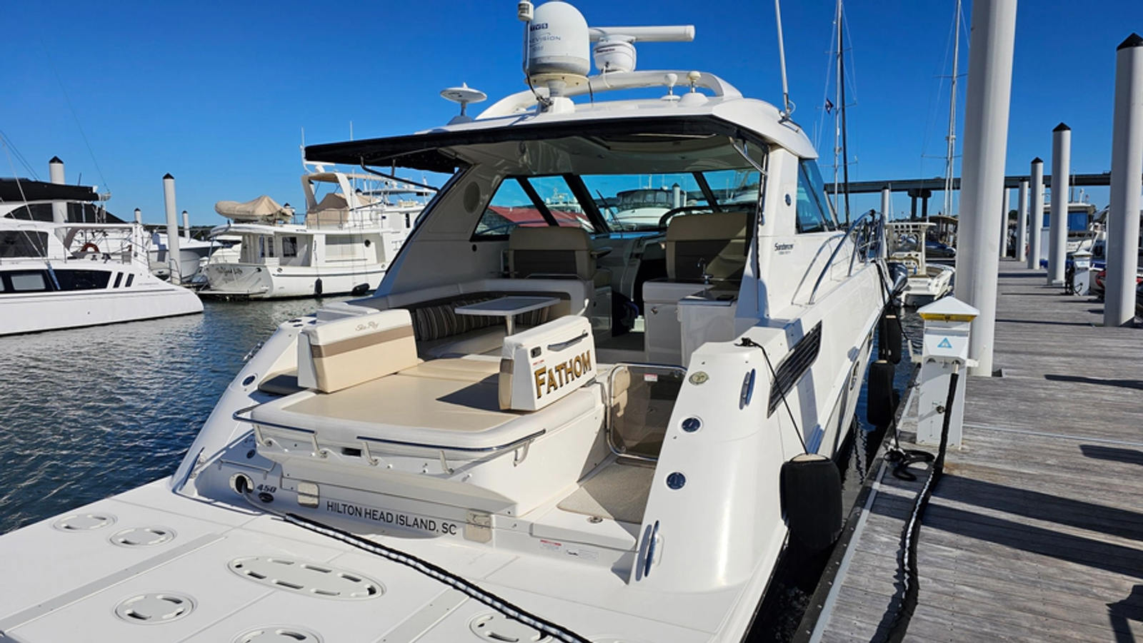 Experience the perfect blend of aggressive performance, sophisticated styling, and luxurious comfort with this exceptionally clean 2014 Sea Ray 450 Sundancer. Known for its “open concept” featuring a versatile salon with an L-shaped sofa that converts into a bed, a fully equipped galley, and a mid-cabin media room, this 45-foot cruiser offers the space and amenities typically found on much larger yachts, making it the ideal vessel for both exciting weekend getaways and extended cruising.