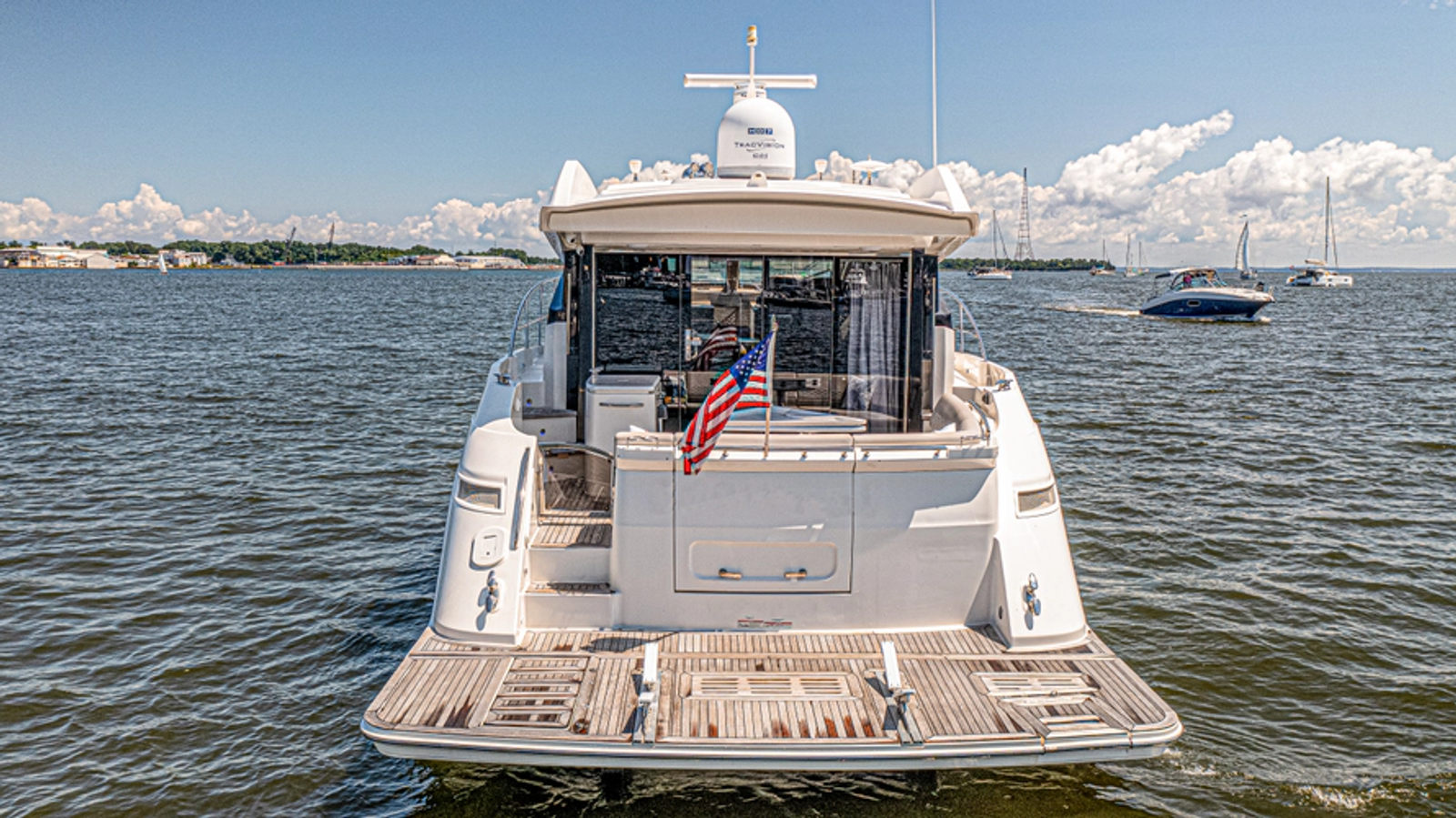 - Full Raymarine electronics: dual GS165 chart plotters, p70RS autopilot display, i70 depth display, integrated bilge and cockpit cameras, Sirius weather module, VHF, and 4kW open array radar