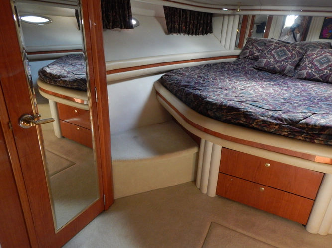 Images displayed may be illustrative or representative rather than depictions of the actual vessel. Variations in features, options, color, condition, and engine hours may exist between images and the actual vessel. For accurate details — including whether images depict the specific vessel listed - please refer to the accompanying description or contact us directly. We encourage prospective buyers to request additional photographs of the actual vessel prior to purchase.- The VIP guest stateroom is amidships to starboard and features.