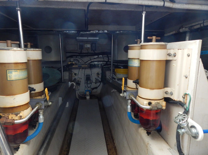 - 24 Racor Fuel Filters (3) V High Water Bilge Alarms with two Back-Up Bilge Pumps (1 - Forward Bilge andamp; 1 - Aft Bilge) - 50 Amp