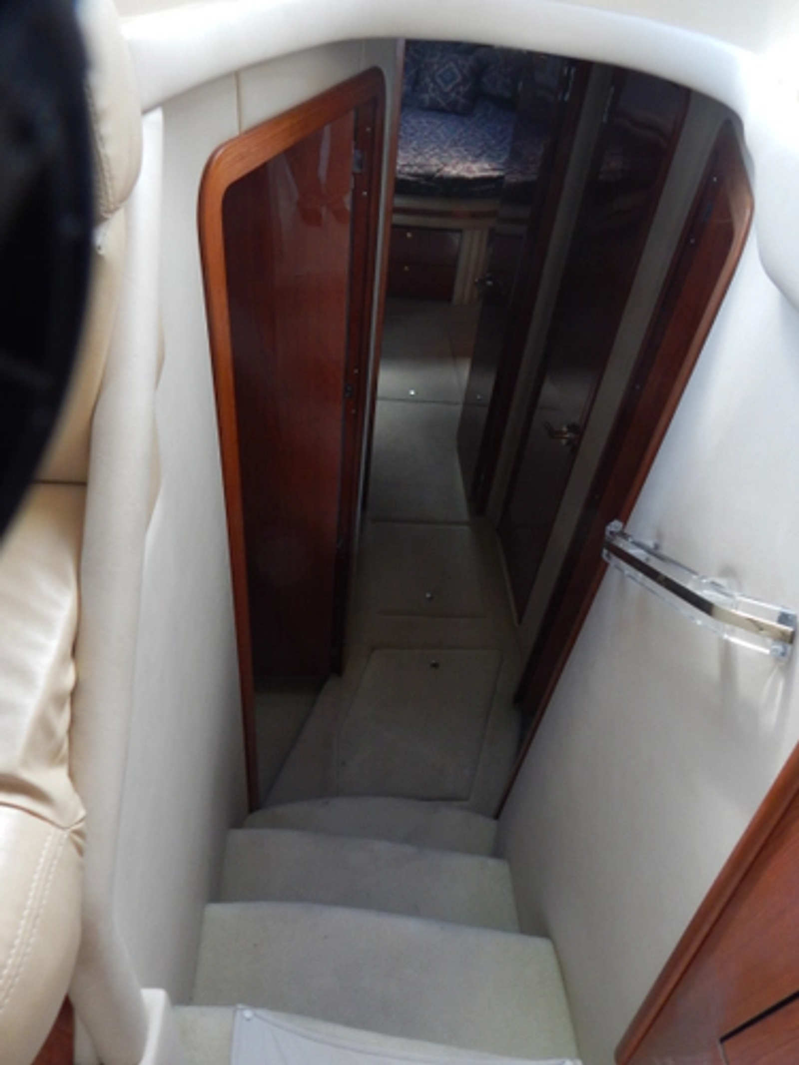 - Across the companionway to port is the third stateroom equipped with two single bunks.