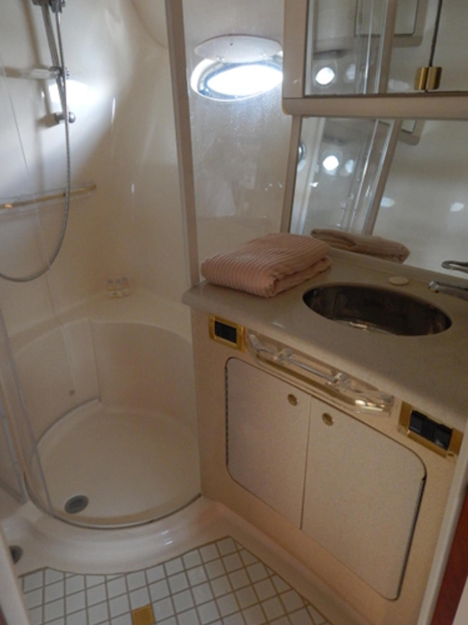 - Medicine Cabinet w- Mirror - Opening Port Light - Power Vent - Privacy Door - Shower w- Seat, Adjustable Shower Wand andamp; Acrylic Circular Door - Upper Storage Cabinet - VacuFlush Head - Vanity w-Corian Countertop, Corian Sink, Mirrors andamp; Storage below
