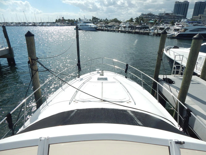Other standard features that add to the performance of the 560 Sedan Bridge include hydraulic power steering, Power Pac exhaust system with lift mufflers and sound insulation, a 20.0 kW Westerbeke diesel generator with sound box, and a complete Raytheon electronics package with VHF, GPS and Raydata.