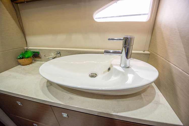 The forward guest cabin has an electrically actuated, tilting bed. Not only does this save space in the cabin during the day, but it also provides the perfect angle to relax on the bed and watch the wall mounted television. Ensuite access to the day head provides complete privacy.