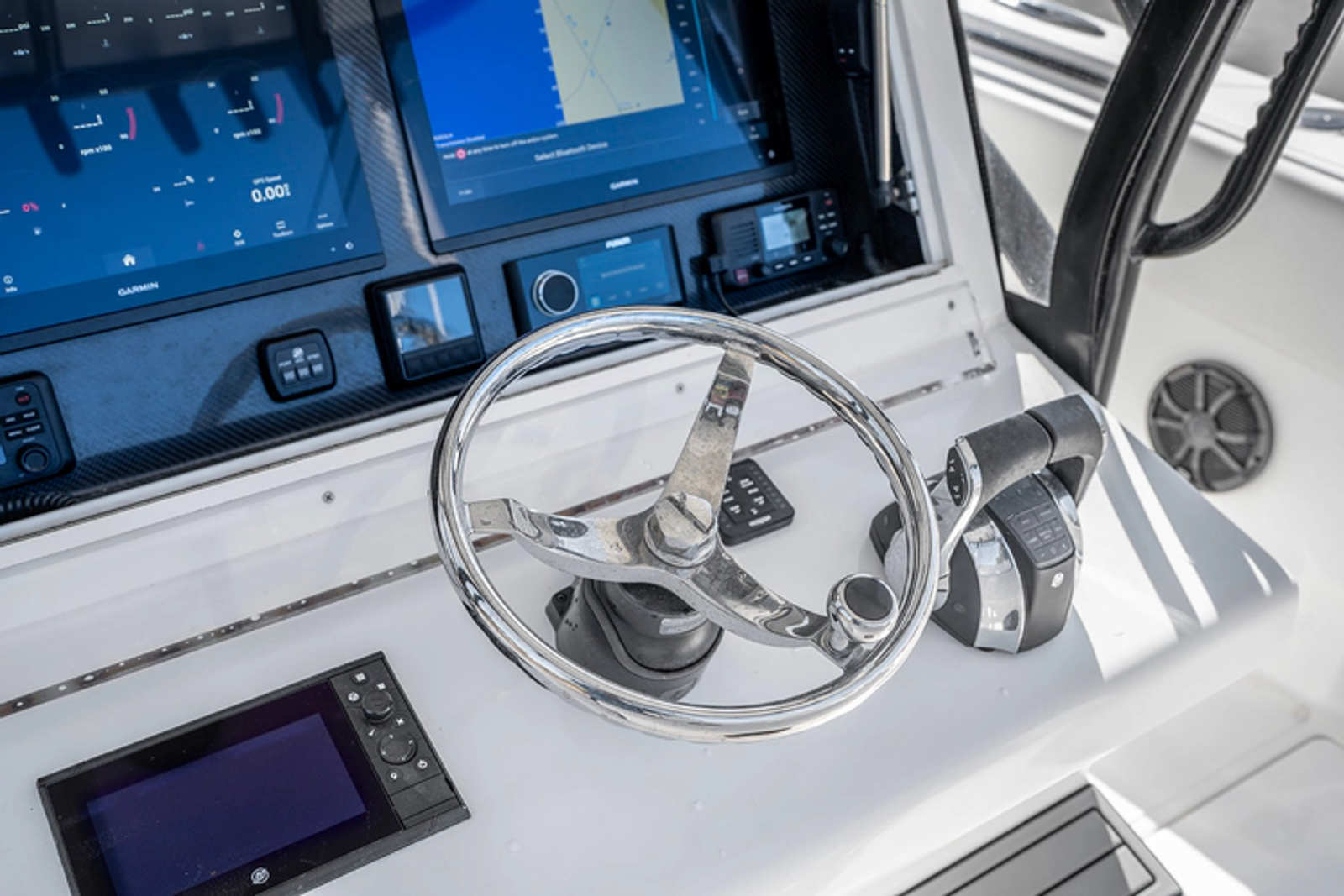 Designed for serious anglers and weekend cruisers alike, the 33CC features twin live wells, large insulated fish boxes, and forward seating with ample storage. The well-equipped helm offers premium electronics, a sleek hardtop, and wraparound windshield for comfort and protection. Immaculately maintained and well-appointed, this SeaHunter 33CC stands out for its low hours, high performance, and ready-to-run condition-perfect for anyone seeking a top-tier, offshore center console.