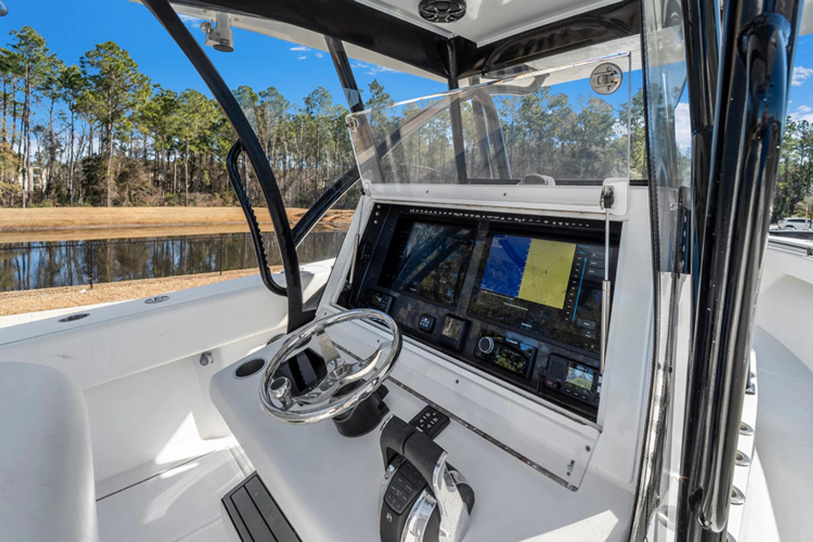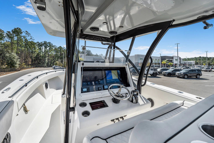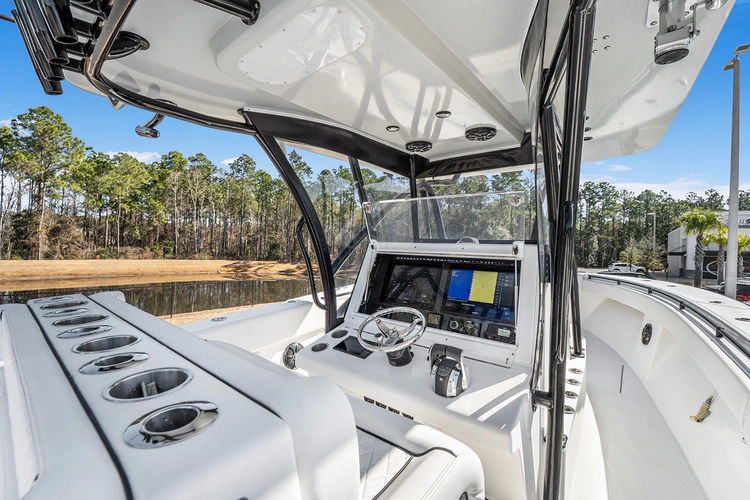 This 2020 SeaHunter 33CC combines performance, style, and dependability in a sleek, offshore-ready package. Powered by triple Mercury L6 400 HP Verado engines with only 400 hours, this 33CC offers exceptional speed, efficiency, and reliability. SeaHunter’s renowned deep-V hull delivers a fast, dry, and stable ride even in demanding sea conditions, while digital controls and power steering ensure precise and effortless handling.