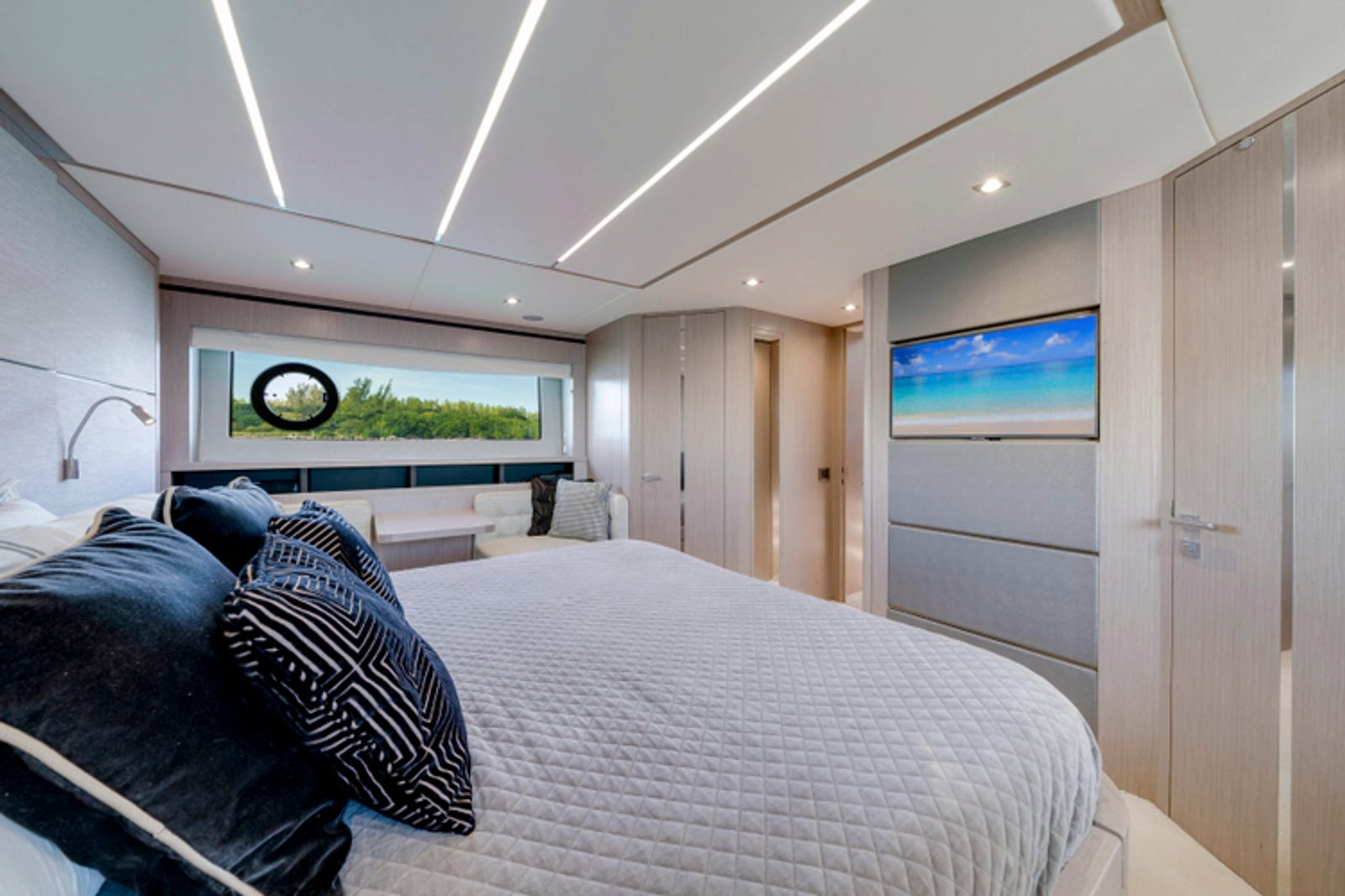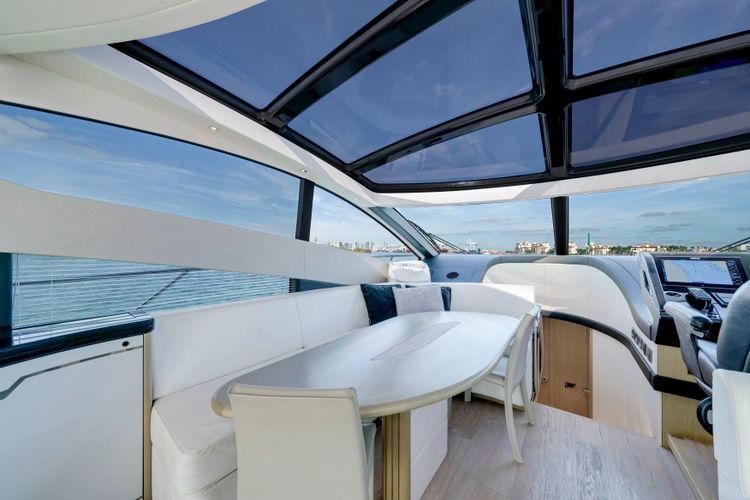 With a large sunroof, frameless windows, a hydraulic swim platform, tender garage, and premium finishes, she blends indoor/outdoor living while delivering the speed, style, and comfort ideal for effortless entertaining.