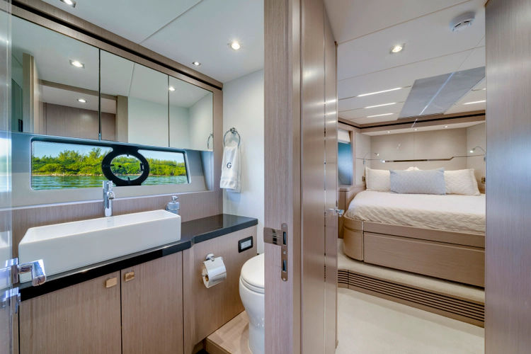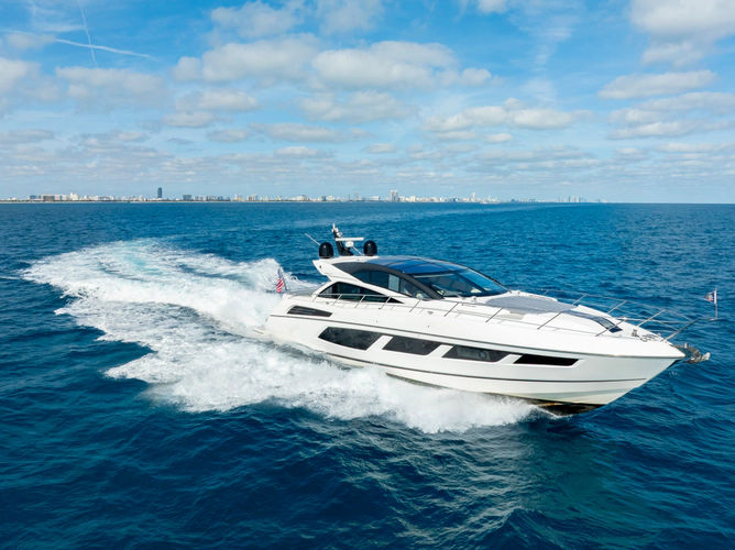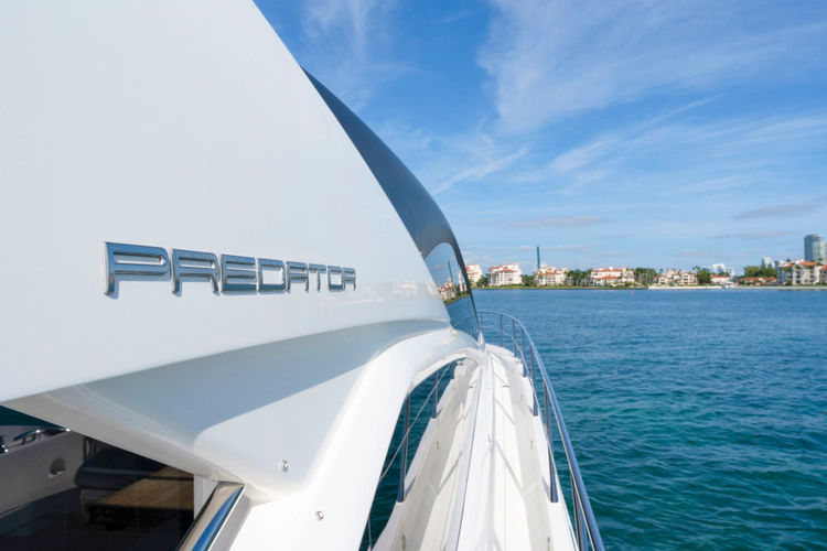 The Predator 68 offers aggressive styling, powerful performance of up to 36 knots, and luxurious light-filled interiors.