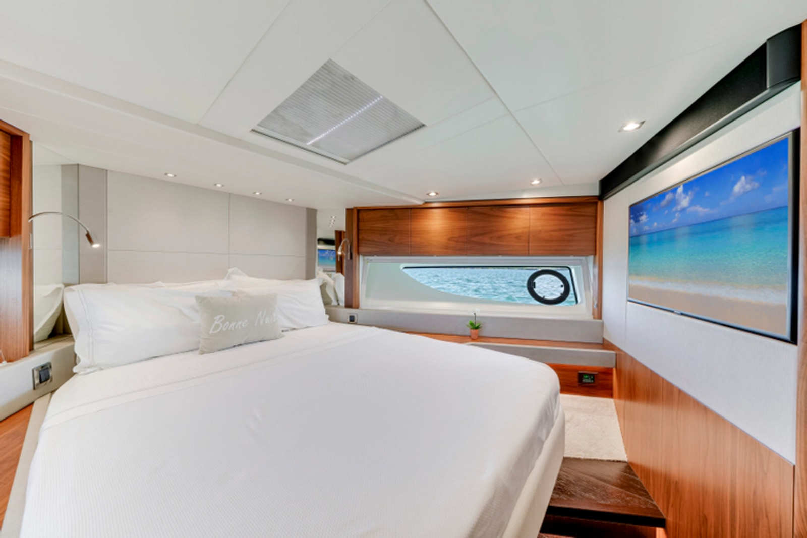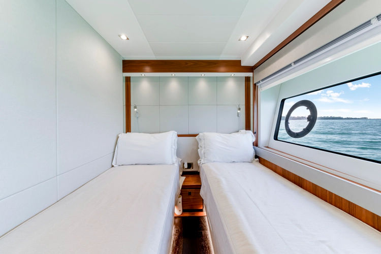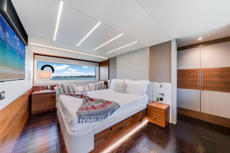 The open-plan salon offers natural light, and the sleek exterior boasts expansive deck spaces, perfect for relaxation or entertaining. With an impressive flybridge, a large swim platform, and cutting-edge technology throughout, this yacht offers a perfect balance of style and performance for those who enjoy the finer things in life on the water.