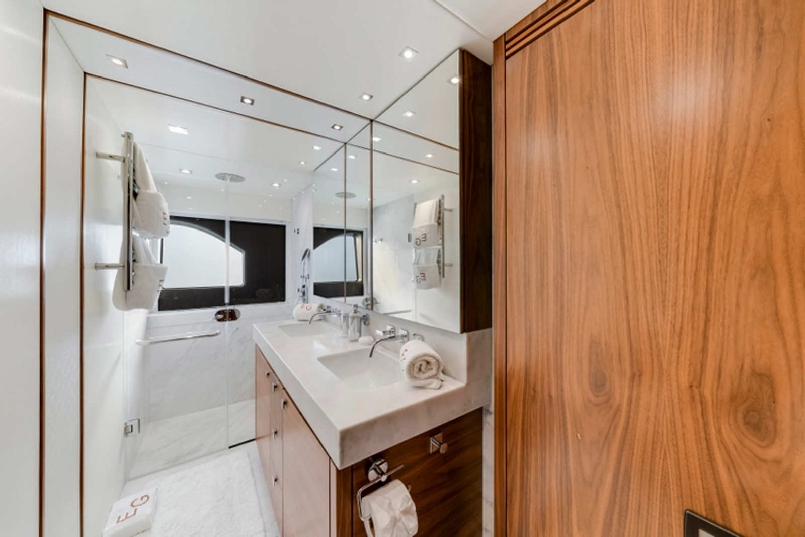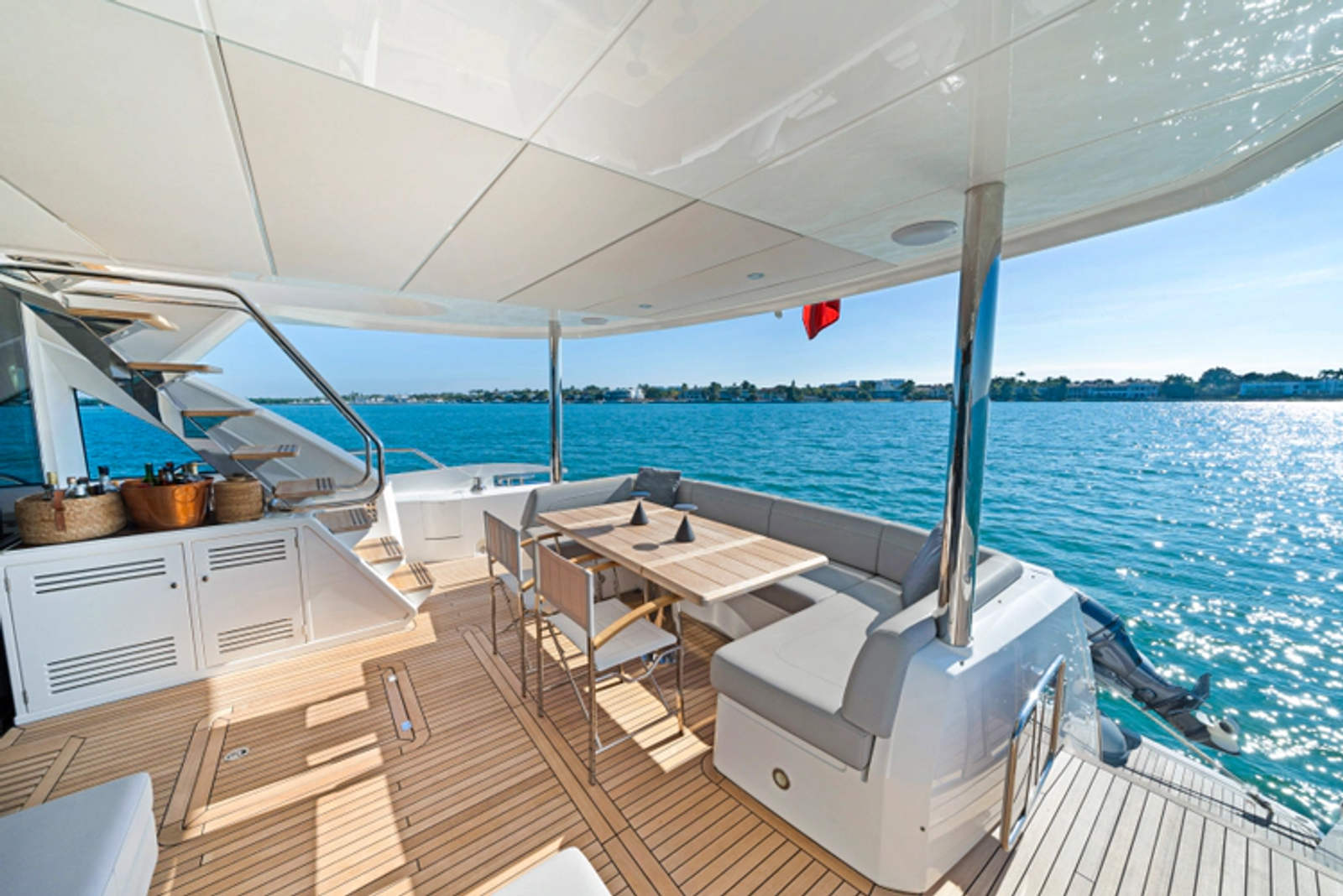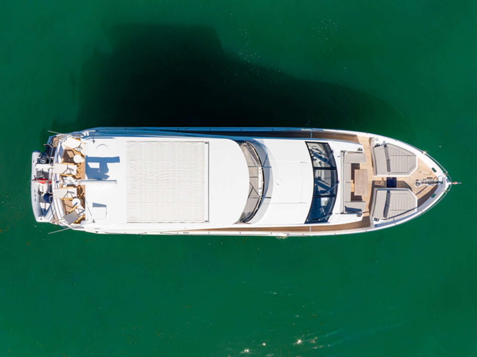 The open-plan salon offers natural light, and the sleek exterior boasts expansive deck spaces, perfect for relaxation or entertaining. With an impressive flybridge, a large swim platform, and cutting-edge technology throughout, this yacht offers a perfect balance of style and performance for those who enjoy the finer things in life on the water.