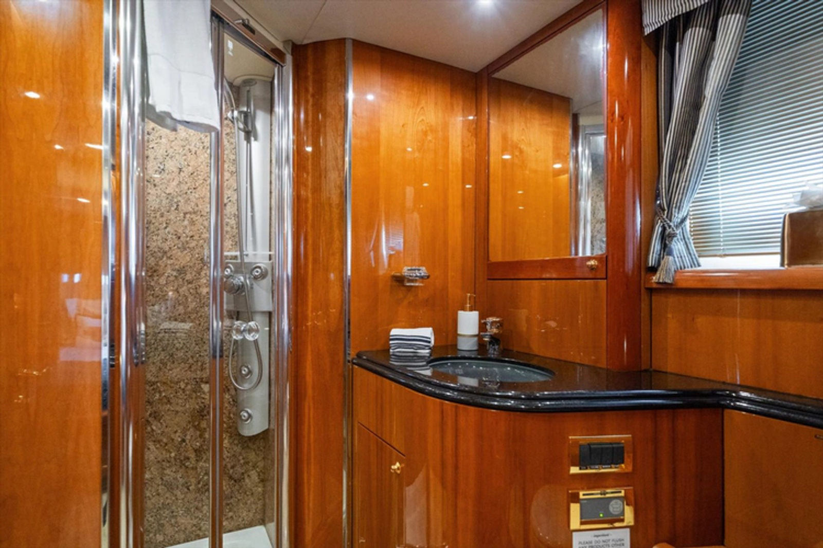 - Black waste water tank discharging to dockside or overboard via macerator pump