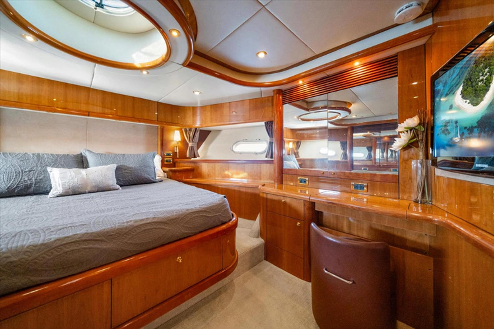 All new headliners and wall liners throughout, reliable CAT engines, waste treatment system, updated Garmin navigation electronics and MUCH MORE. Sought after high gloss cherry wood with grand master stateroom layout featuring private access staircase. Gorgeous styling and many updates make VANGUARD an excellent option for private use or charter.