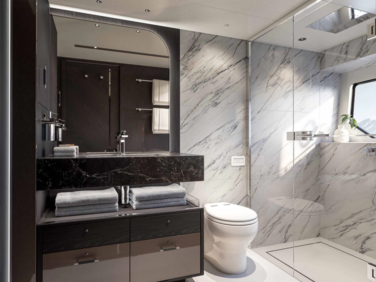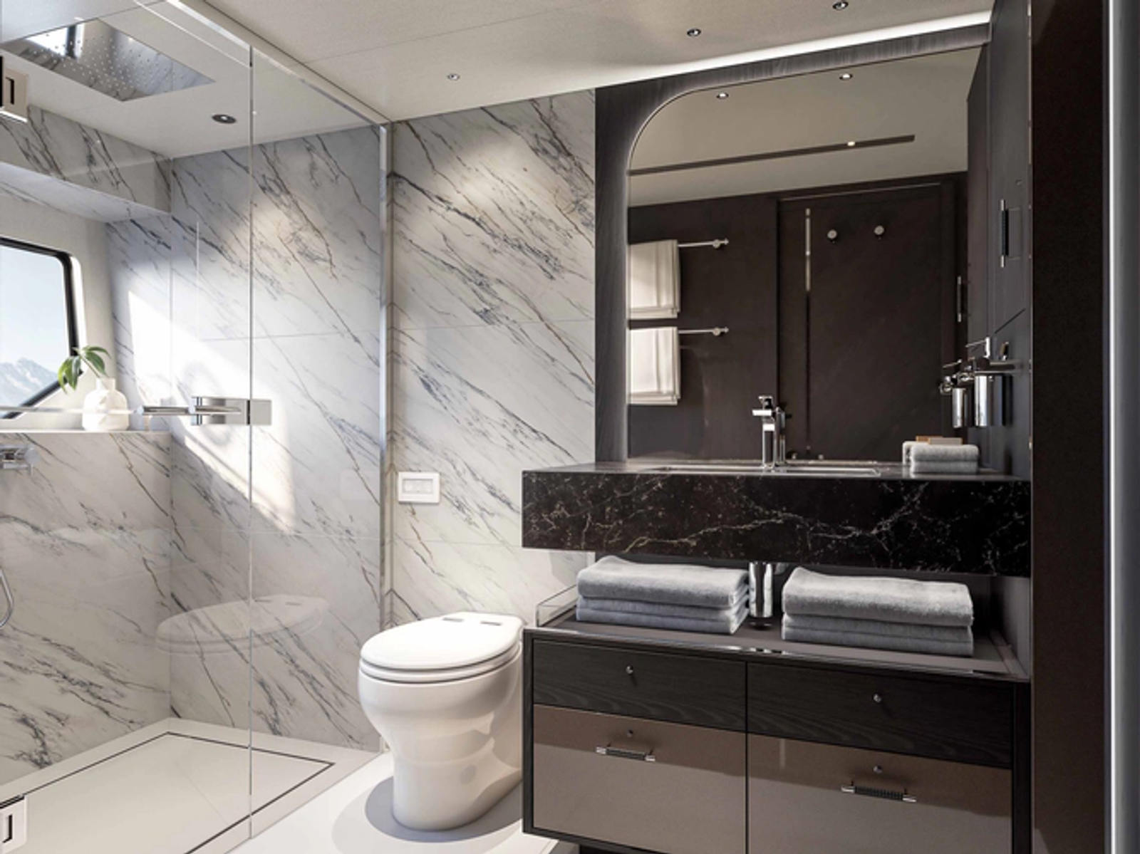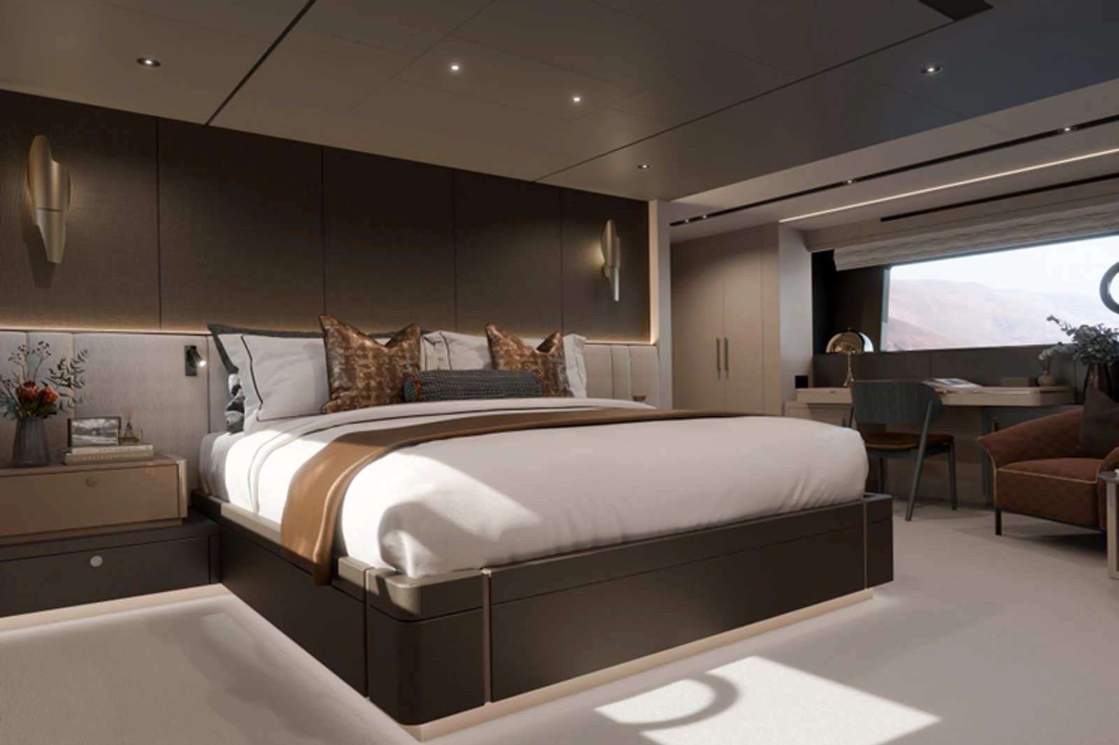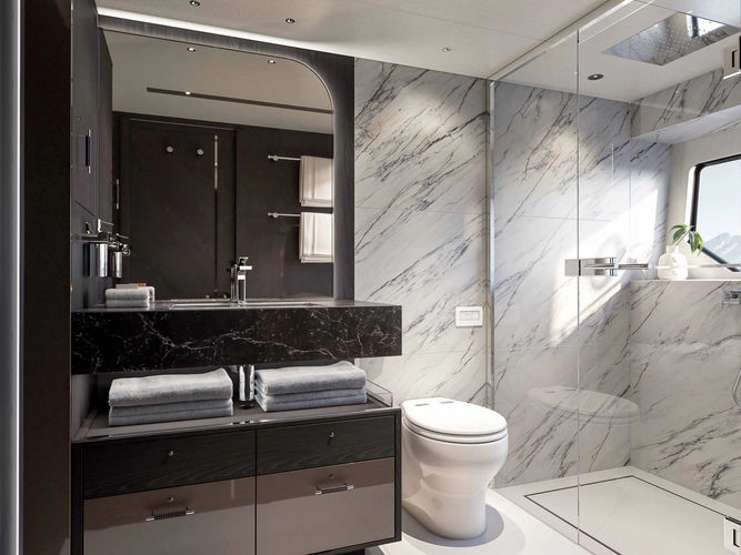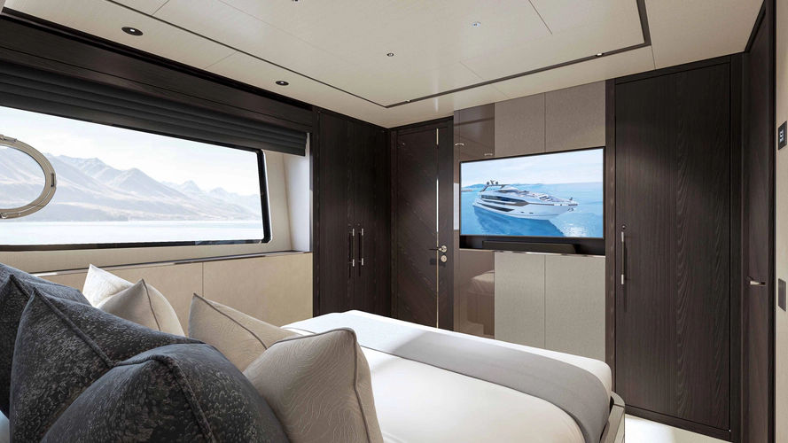 The 94 Yacht delivers commanding presence and sophisticated design in a highly livable layout. Expansive glazing floods the interior with light, while the exterior spaces are arranged for relaxed entertaining and panoramic views. With substantial accommodations and a capable cruising profile, she offers a true large-yacht experience.