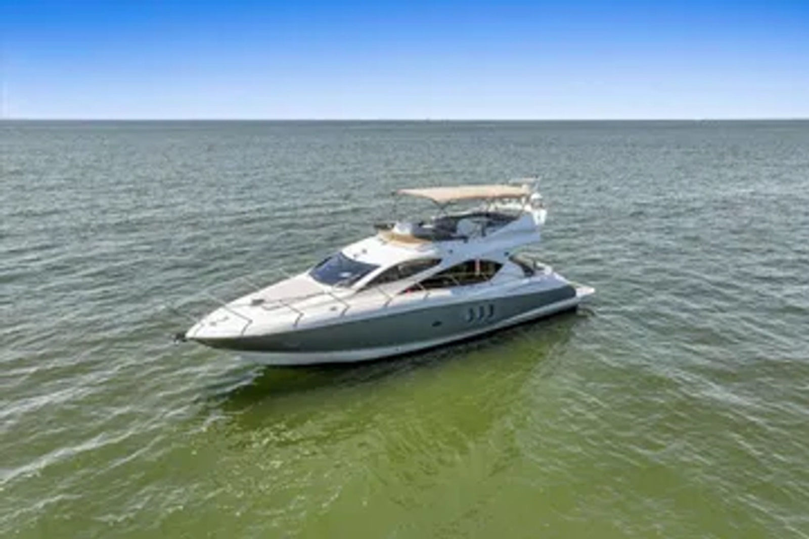 - Custom extended flybridge Bimini