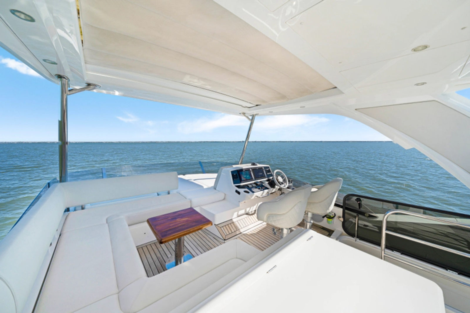 • Flybridge with U shaped seating, table, wet bar, sink and refrigerator