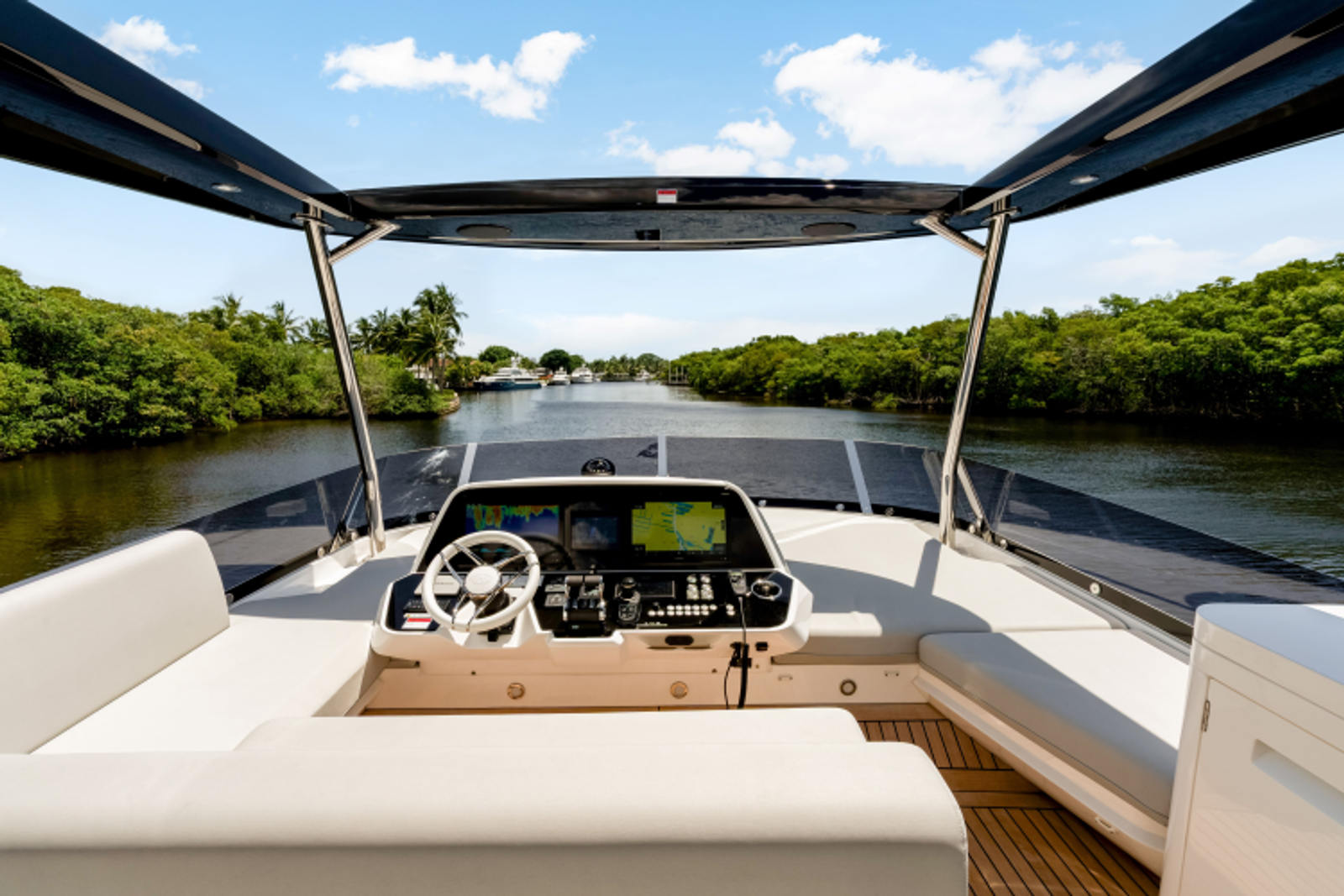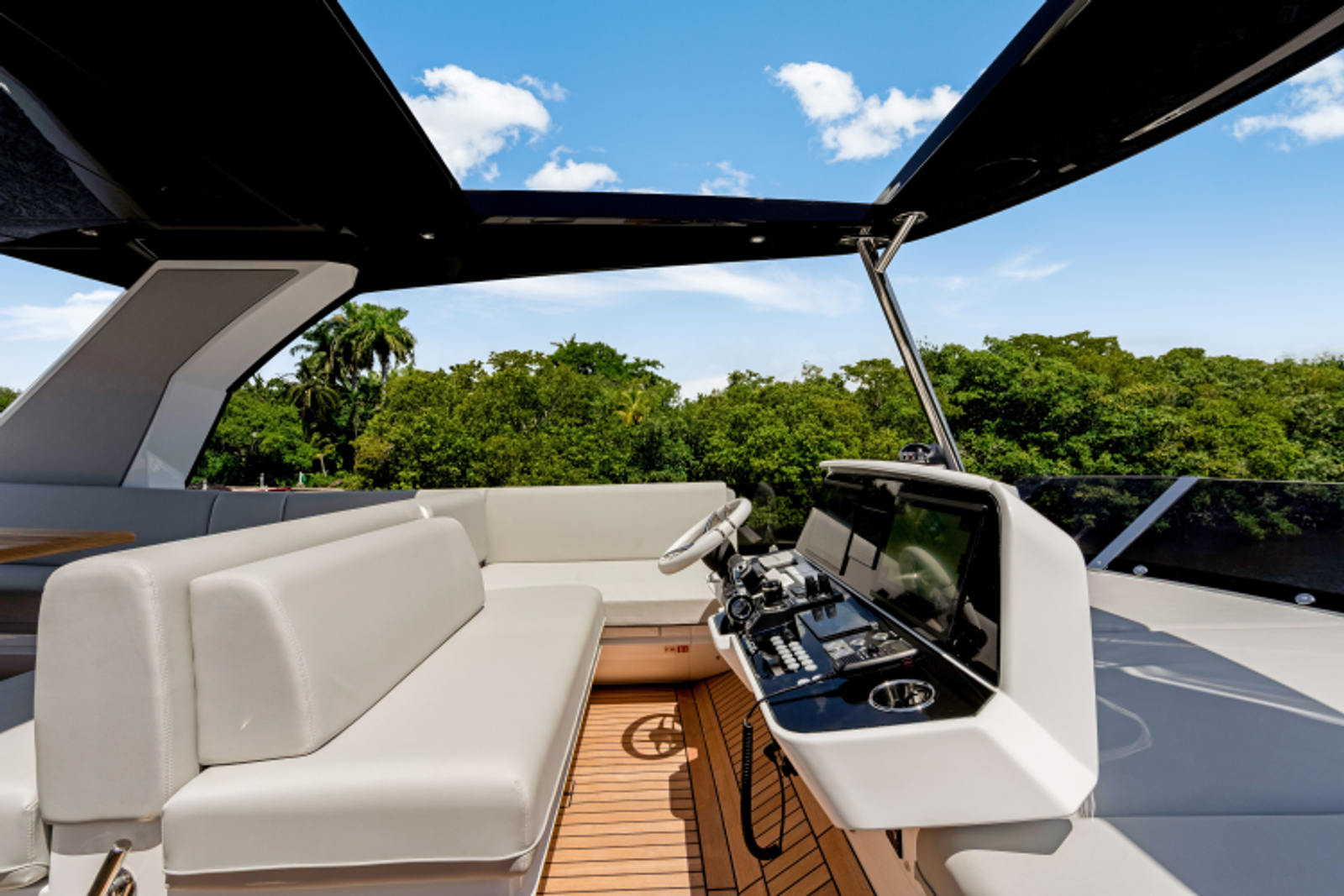 - Flybridge Hard top on stainless steel supports with electric central opening and stern electric canopy