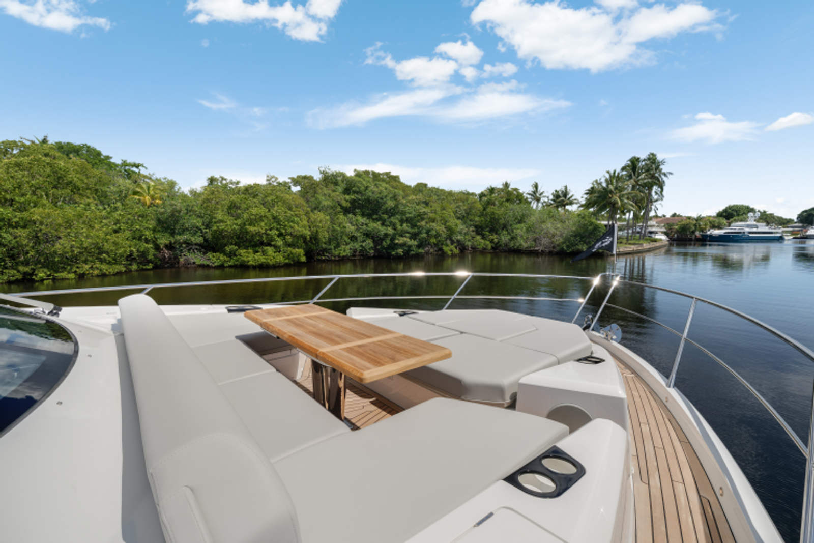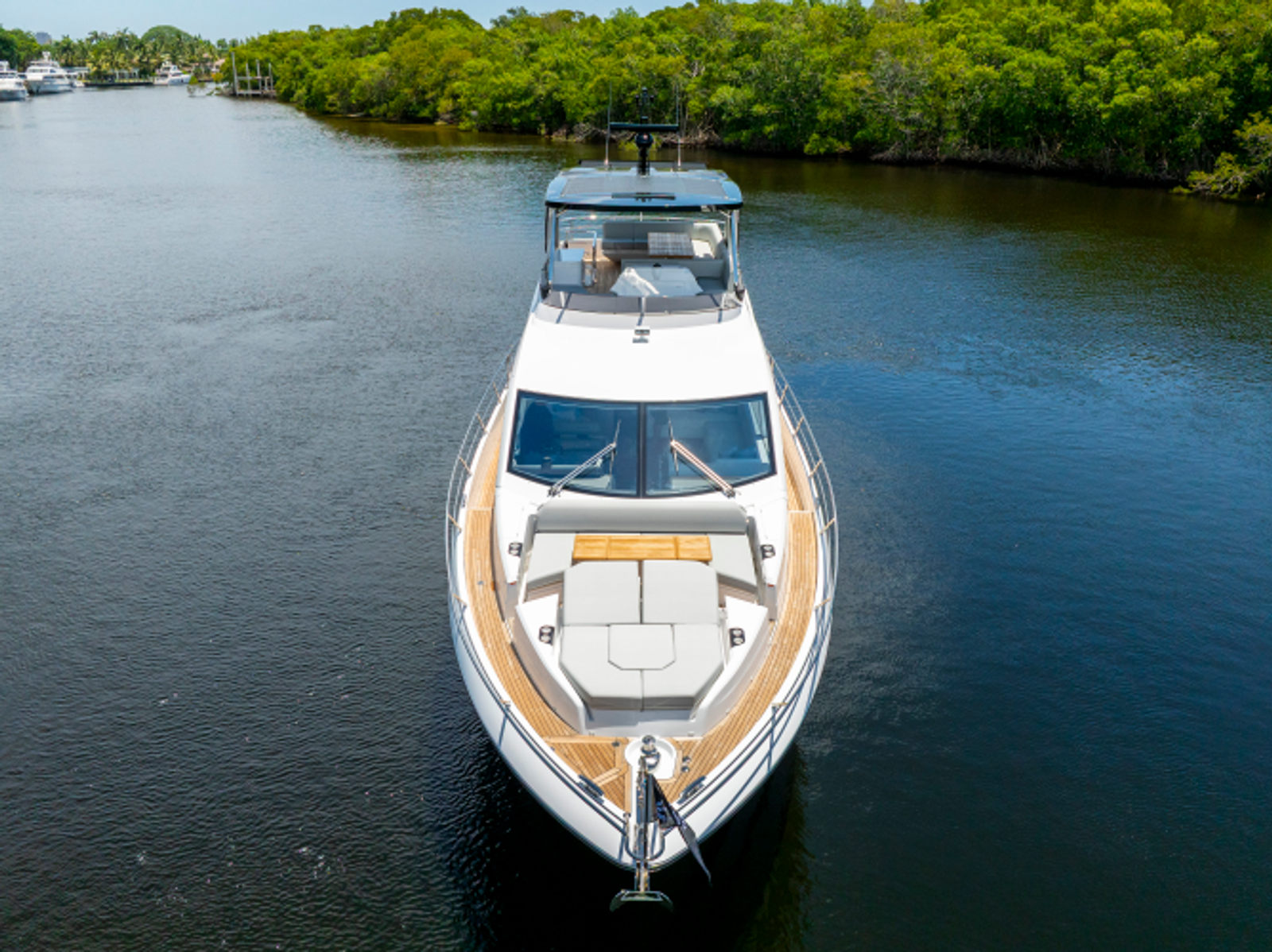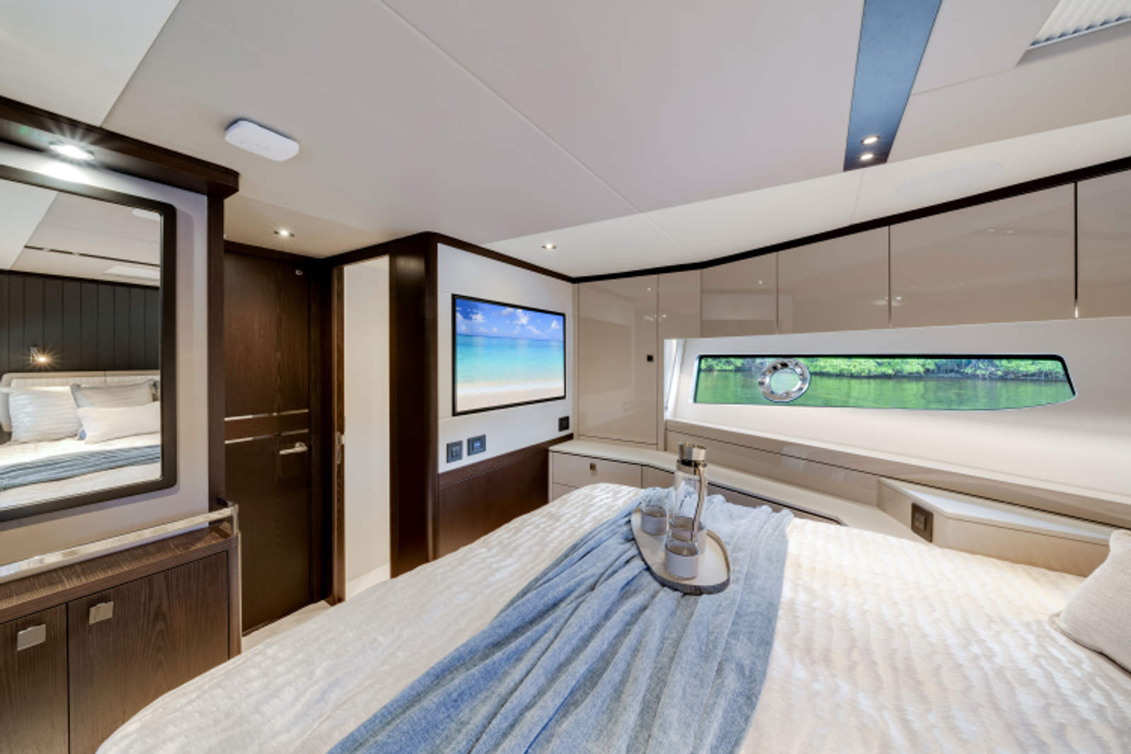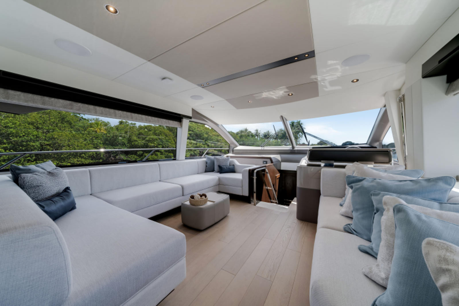The fully-equipped aft galley with a large dinette links seamlessly to the cockpit via full-width sliding doors, helping to bring everyone together. The innovative design layout allows yachting owners to welcome guests with a strong focus on ambient lighting and interior detailing. Access to the spacious guest and master cabins is via the lower helm and elevated companion seating. The interiors boast exquisite attention to detail with a new palate of upholstery that provides a cool, crisp, and contemporary look, unmistakably a Manhattan.