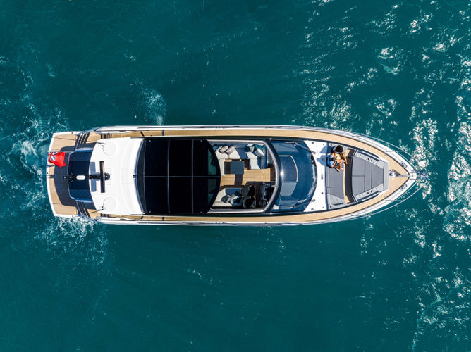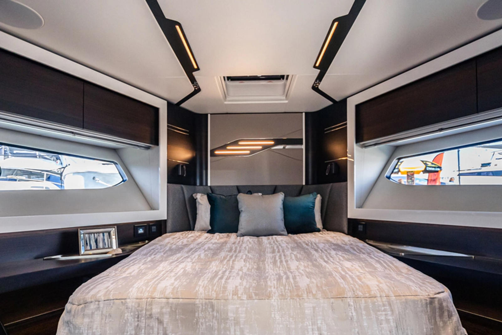 The Predator 65 combines striking exterior lines with impressive onboard volume. Designed for fast cruising and social entertaining, she features expansive exterior lounging areas and a refined interior with abundant natural light. Her layout balances performance with comfort, offering well-appointed guest accommodations and a commanding helm position for engaging, driver-focused yachting.